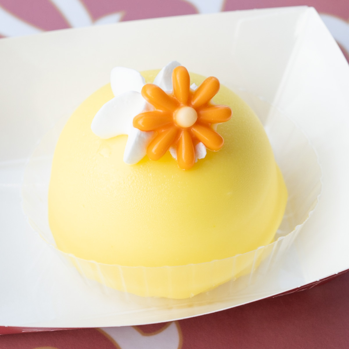 濃厚なレアチーズのムースと、オレンジの酸味が効いたゼリーが層になった、春らしい色合いのスウィーツです。