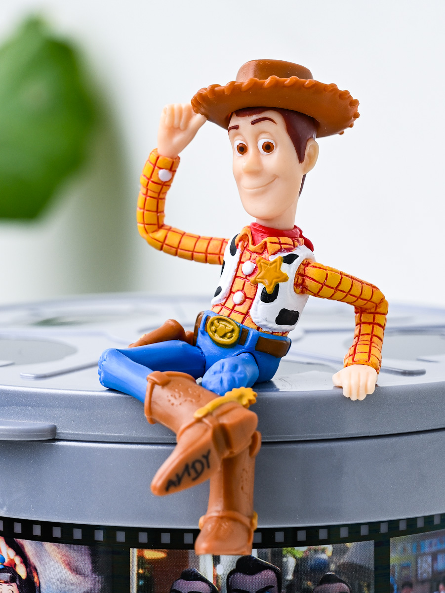 上部にはディズニー/ピクサー映画『トイ・ストーリー』シリーズの主人公「ウッディ」のフィギュア。