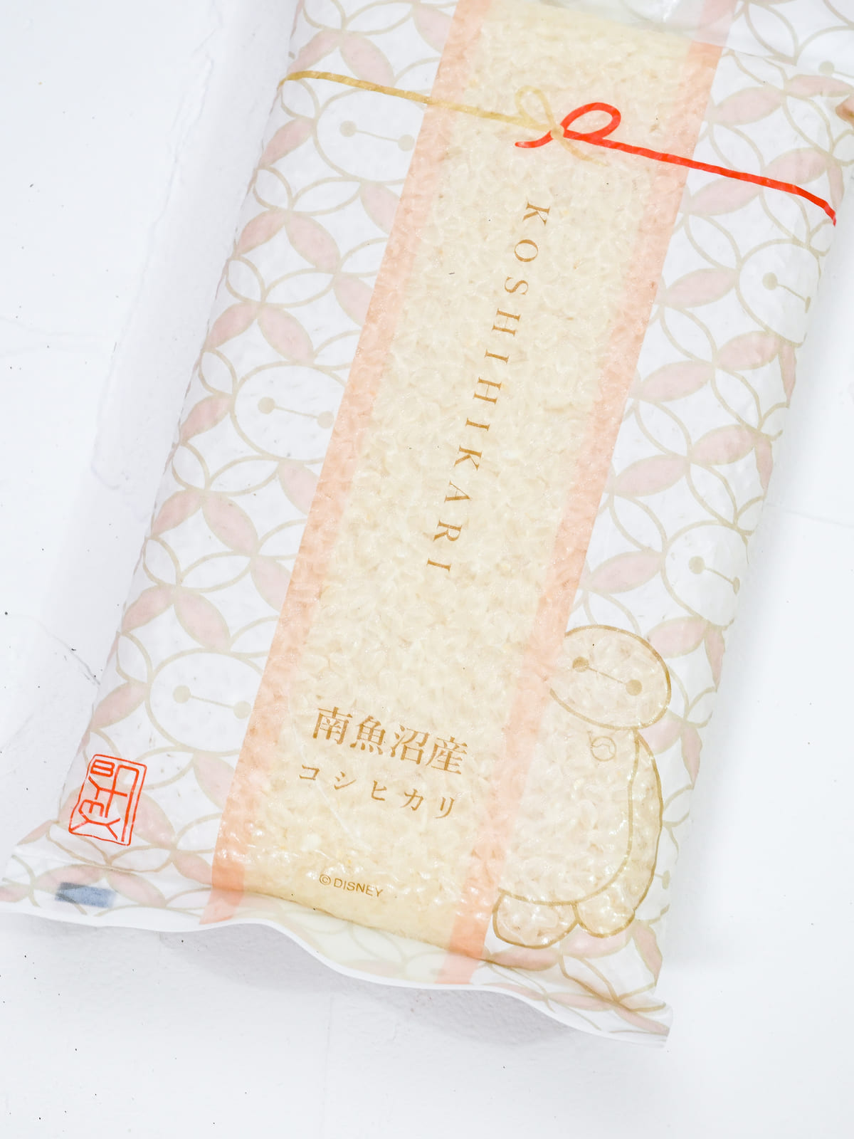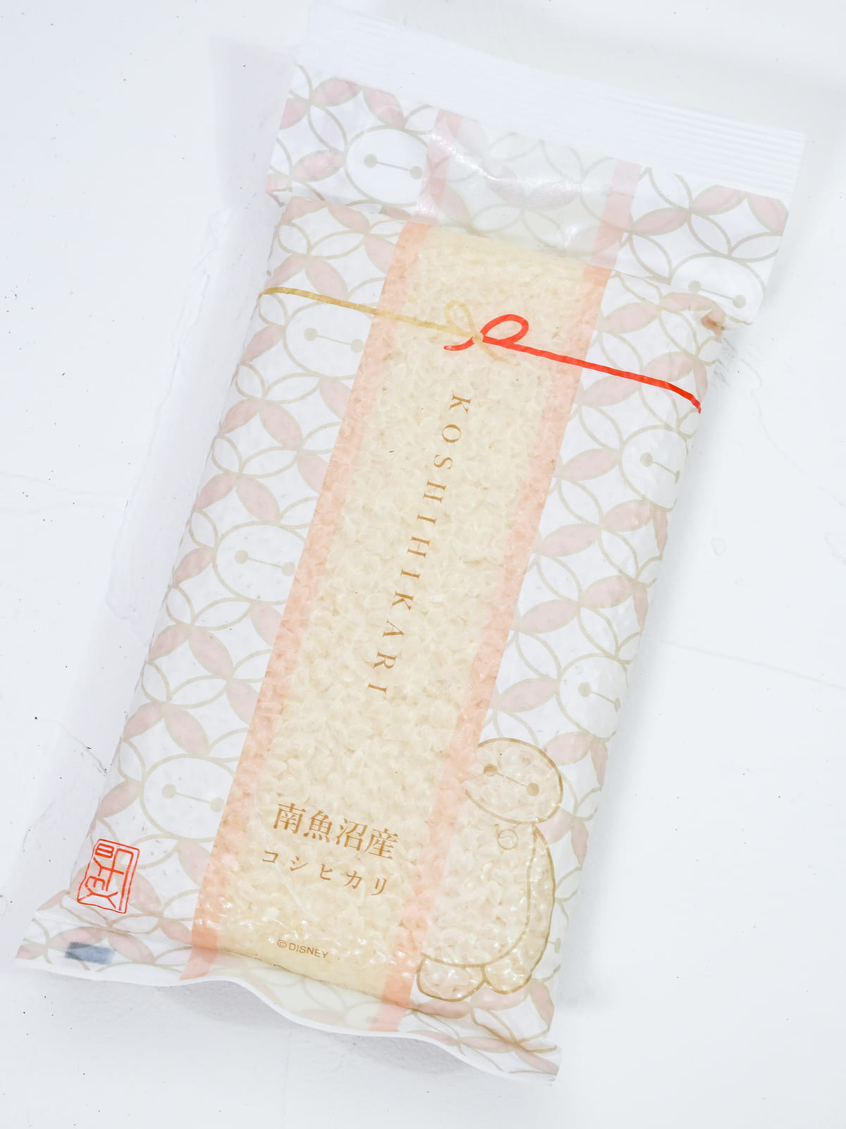 「ベイマックス」デザインのパッケージがかわいい新潟県南魚沼産のコシヒカリ。
