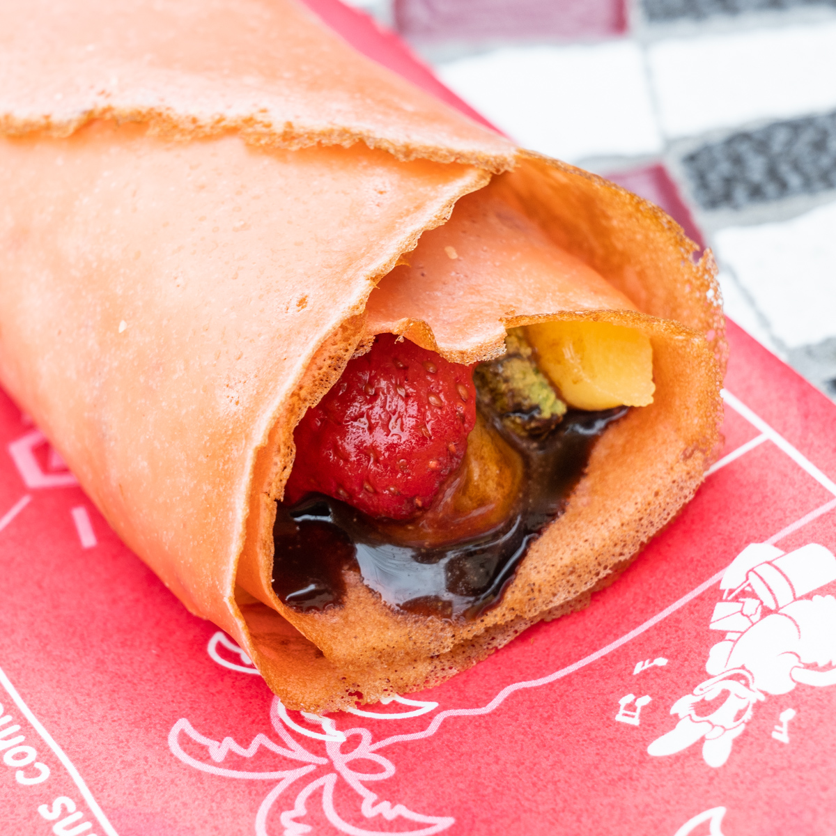 クレープはストロベリーとピスタチオのクレープ、ケイジャンシュリンプクレープの2種類です☆