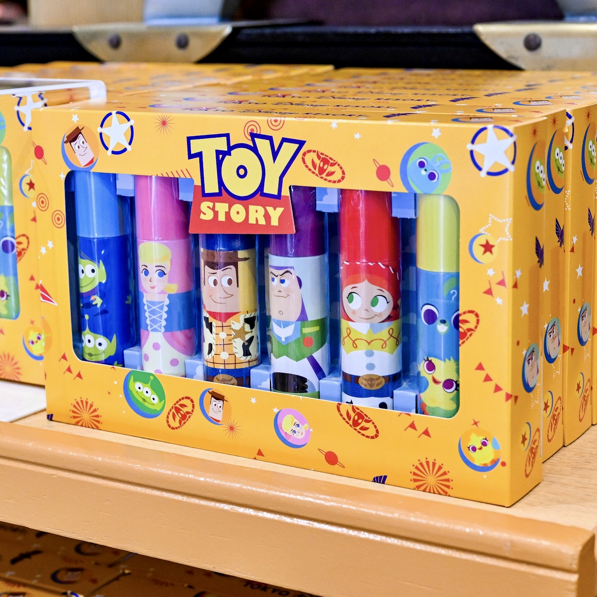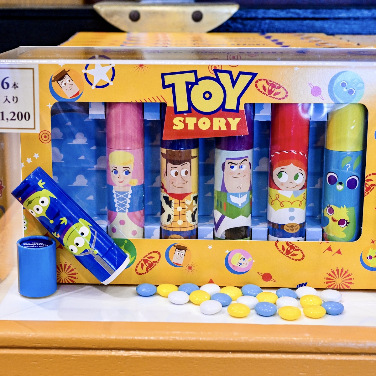 ウッディ、バズ・ライトイヤー、ジェシー、リトルグリーンメン(エイリアン) 、ボー・ピープ、ダッキー&バニーがデザインされた個包装6本入り。