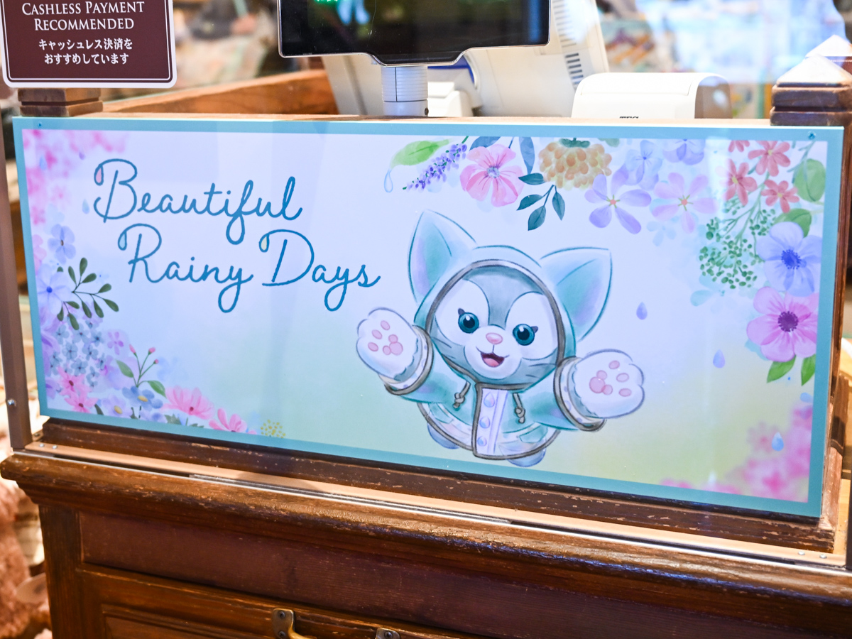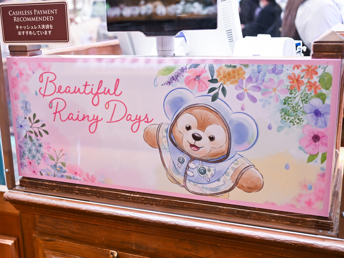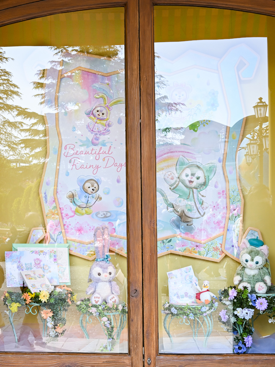 「ダッフィー」「シェリーメイ」「ジェラトーニ」「ステラ・ルー」の4人が、レインウェアを着て雨の日を楽しむ様子をデザインしたスペシャルグッズやスーベニア付きメニューが登場しています。