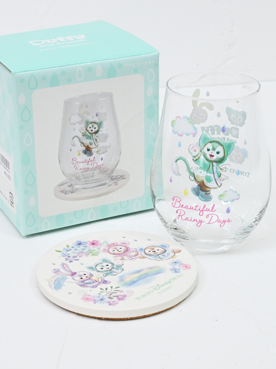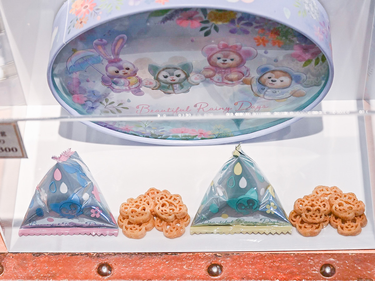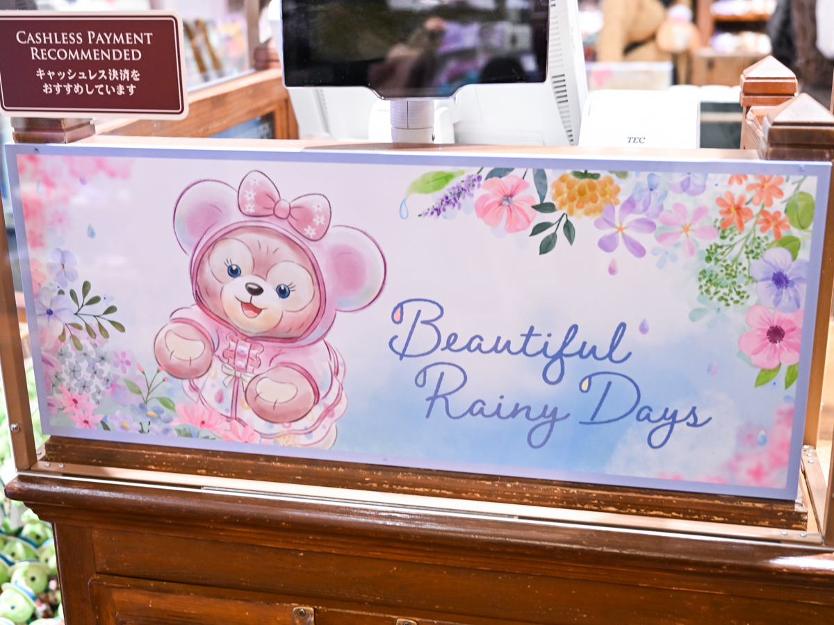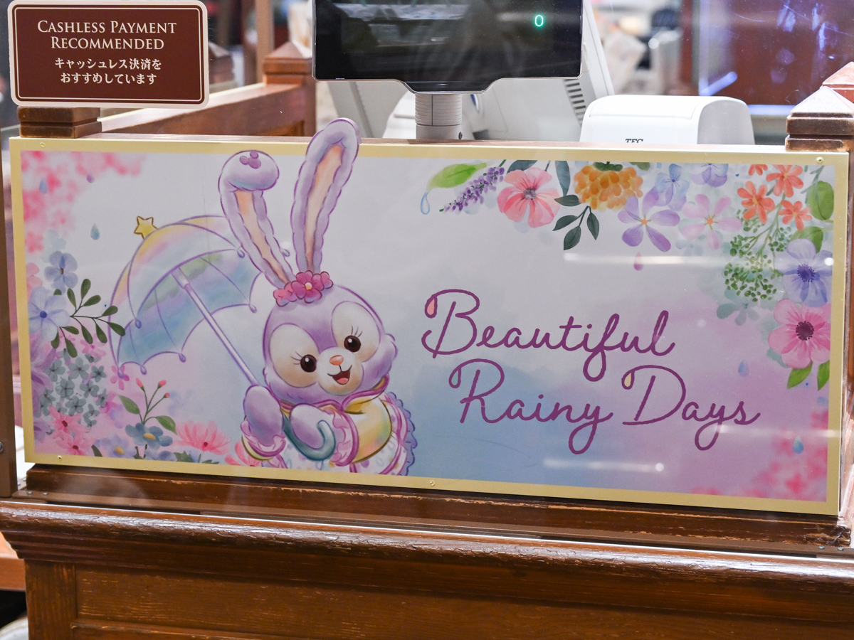 「ダッフィー」「シェリーメイ」「ジェラトーニ」「ステラ・ルー」の4人が、レインウェアを着て雨の日を楽しむ様子をデザインしたスペシャルグッズやスーベニア付きメニューが登場しています。