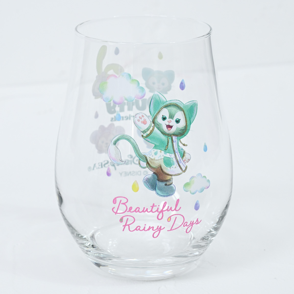グラス前面には、雨の日を楽しむジェラトーニがデザインされています。