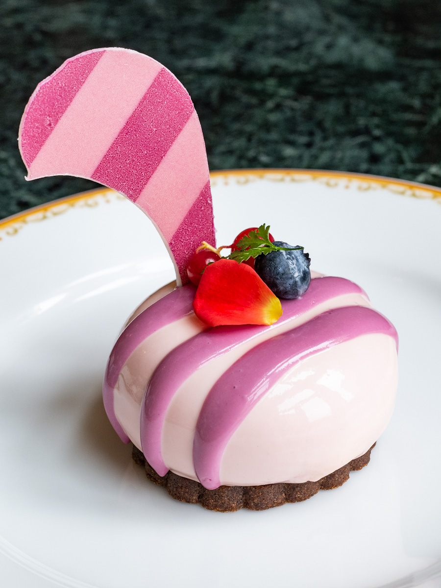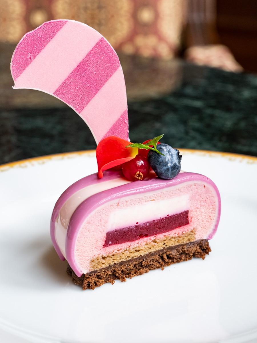 ディズニー映画『ふしぎの国のアリス』の人気キャラクター「チェシャ猫」をモチーフにしたケーキはベリームース。