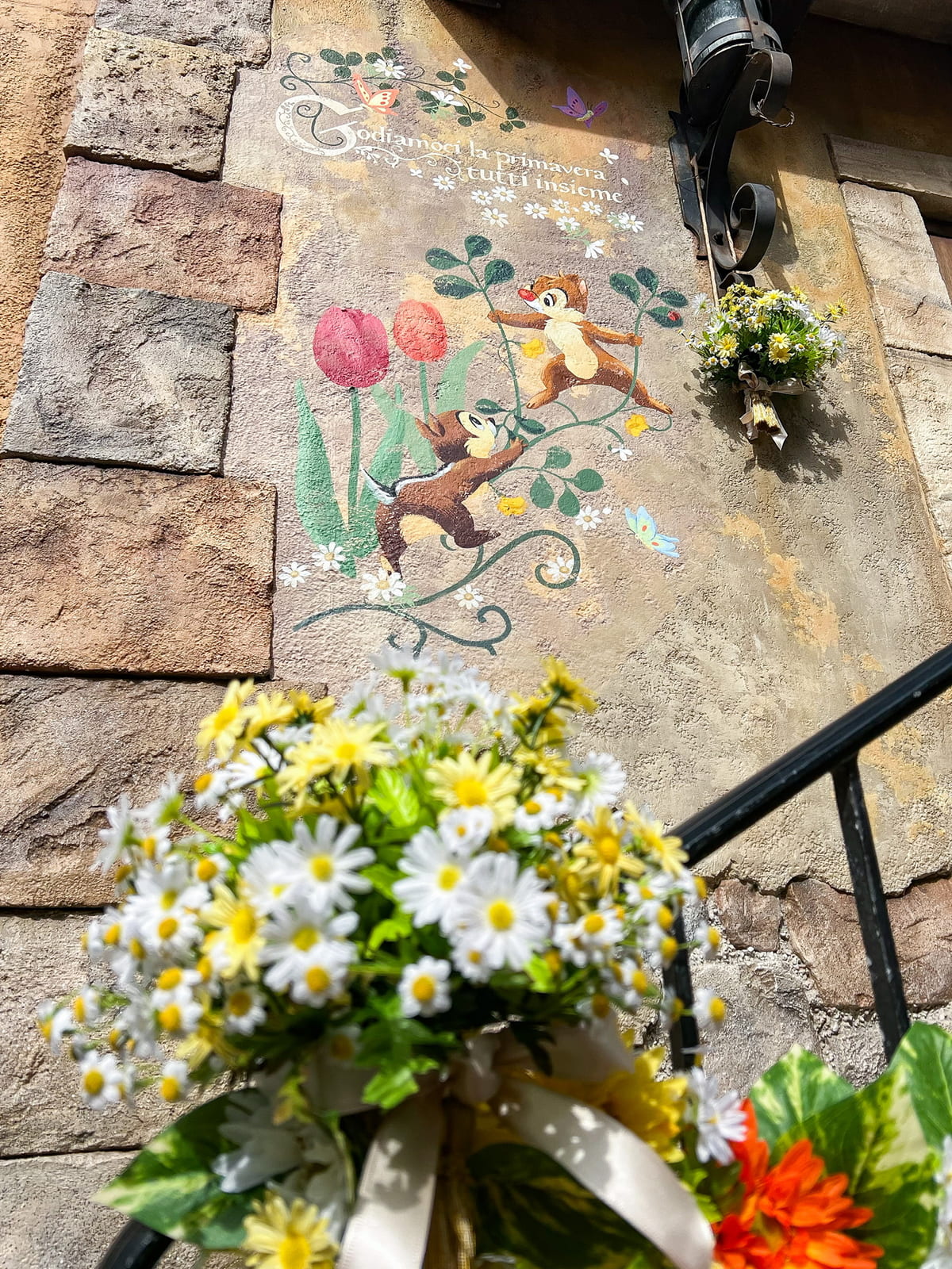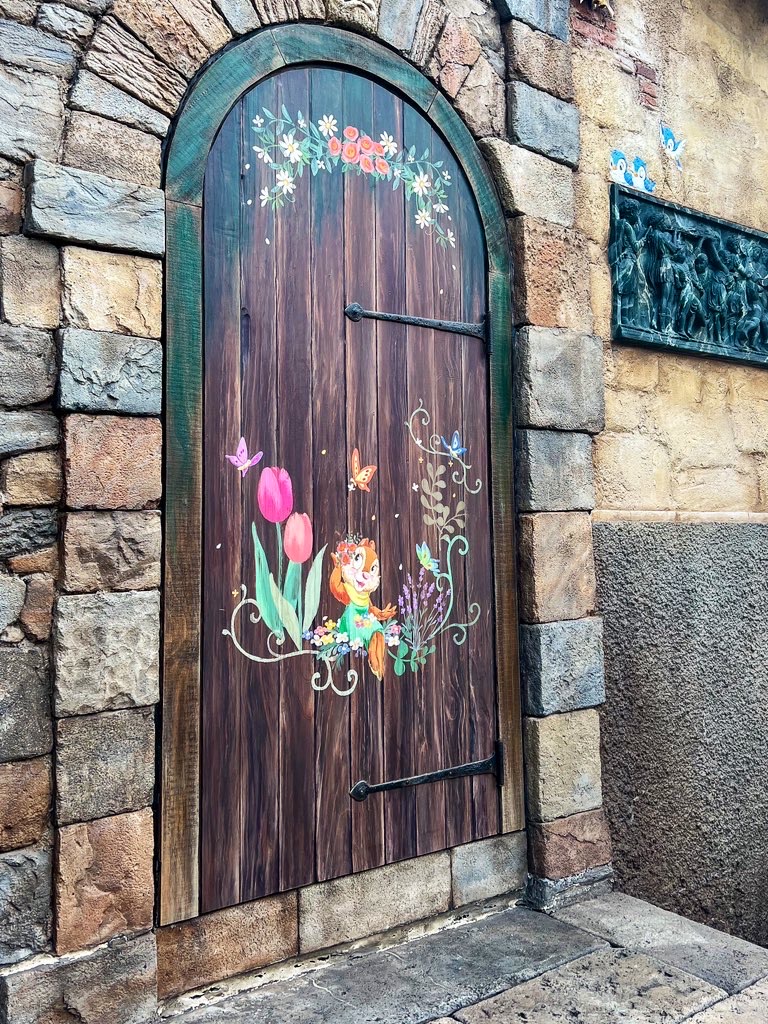 入り口にはチューリップに入ってすやすや寝ているチップ&デールと、