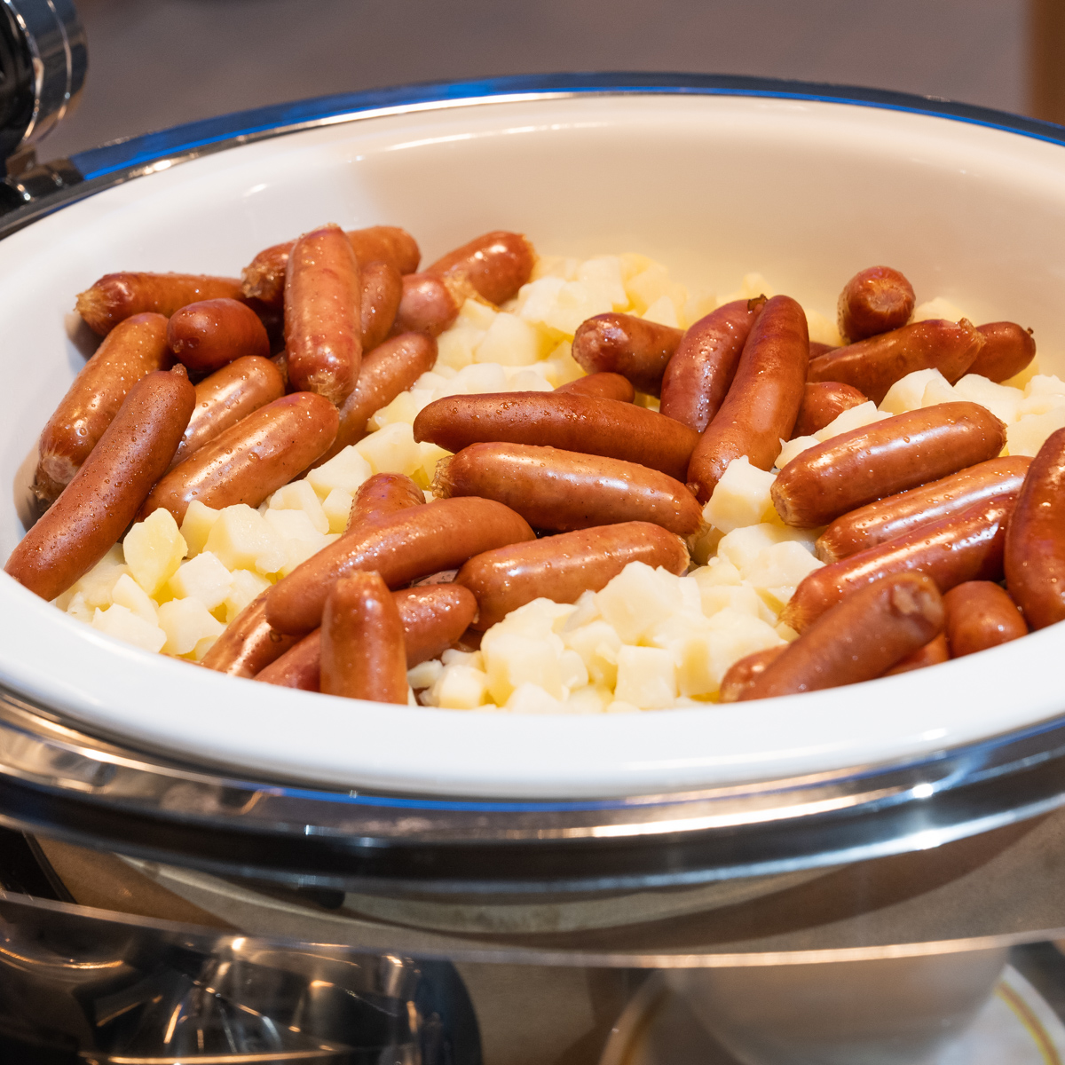 メインとなる温製メニューは、ベーコンと彩り野菜、