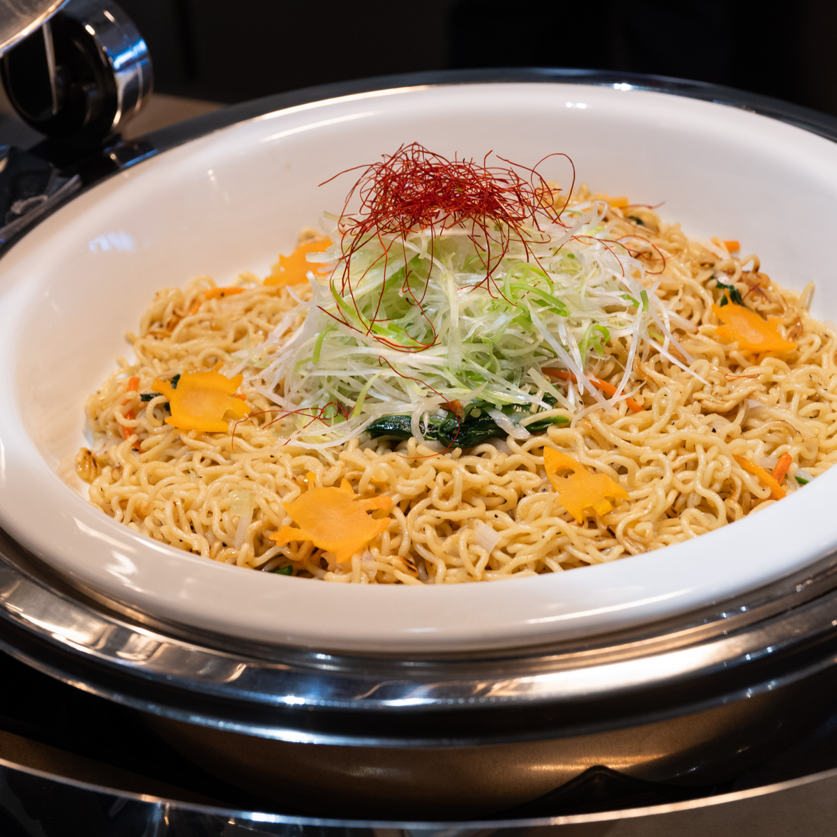 「リトルグリーンメン」やロケットなどかわいくトッピングされたやきそば、トルティーヤ、