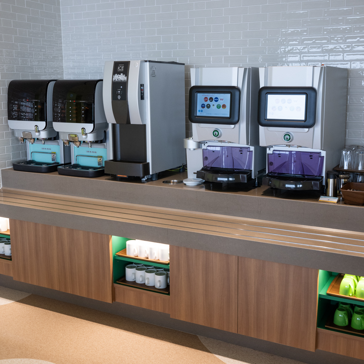 コカ・コーラ、コカコーラゼロ、カルピス、カルピスソーダ、紅茶花伝などソフトドリンクや、