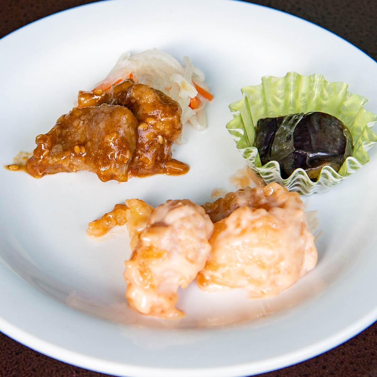 - 前菜(ポーク、エビマヨ、揚げナスの冷製)