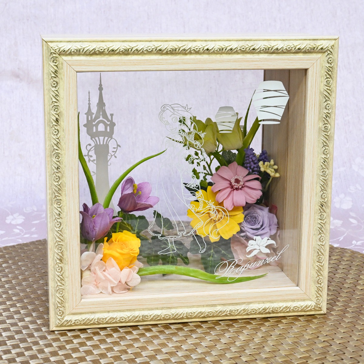 遠近感のあるフレームがおしゃれ!イイハナ・ドットコム プリザーブド&アートフラワー「Flower World/ラプンツェル」
