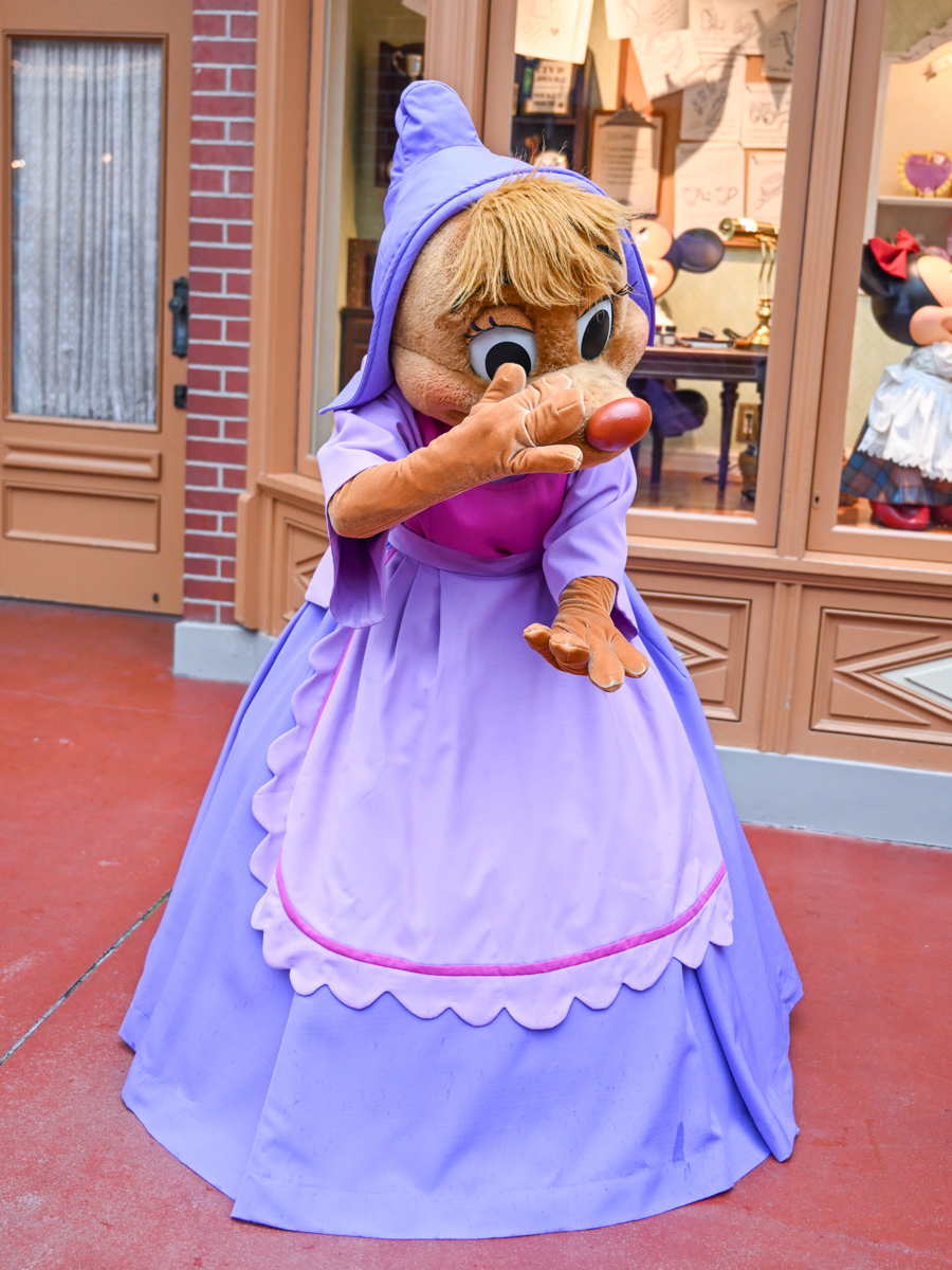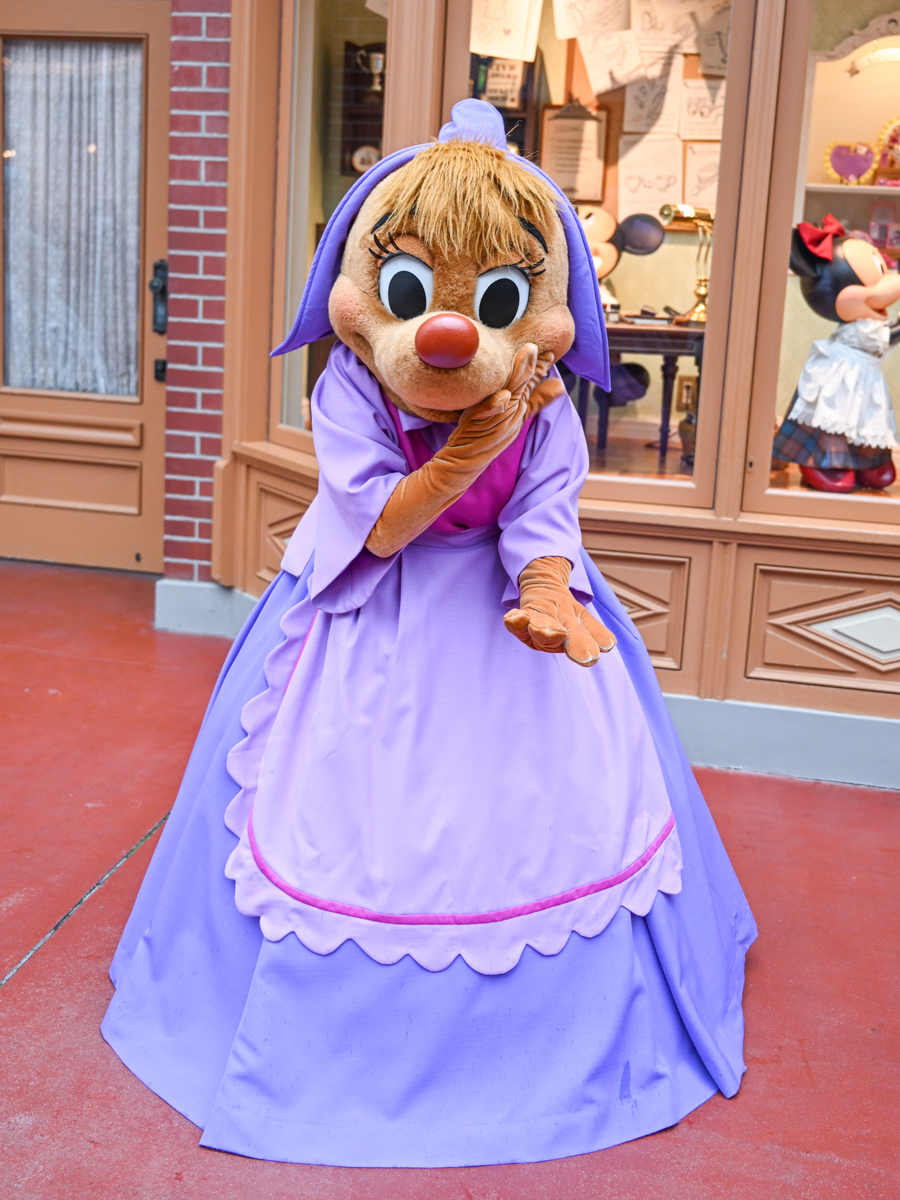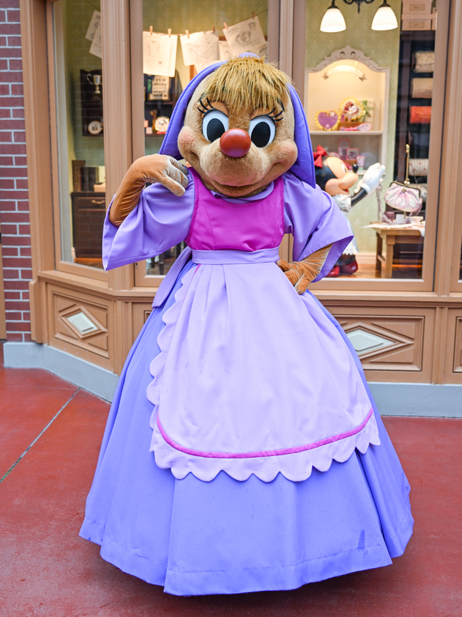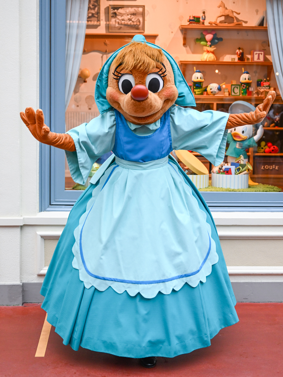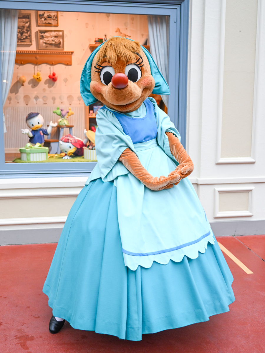 東京ディズニーランド、ワールドバザールにあるショップ「グランドエンポーリアム」前にディズニー映画『シンデレラ』に登場する「スージー」と「パーラ」がやってきました!