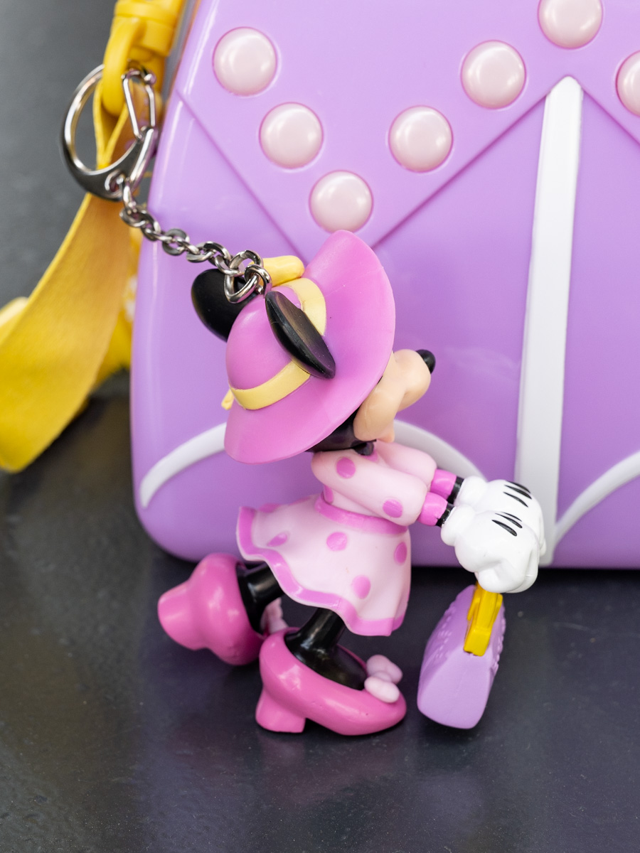 「ミニーマウス」のかわいいフィギュアキーホルダー付き。