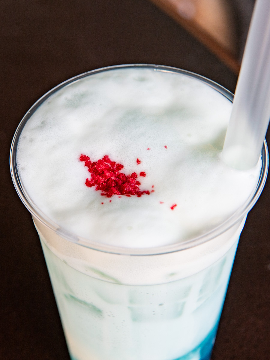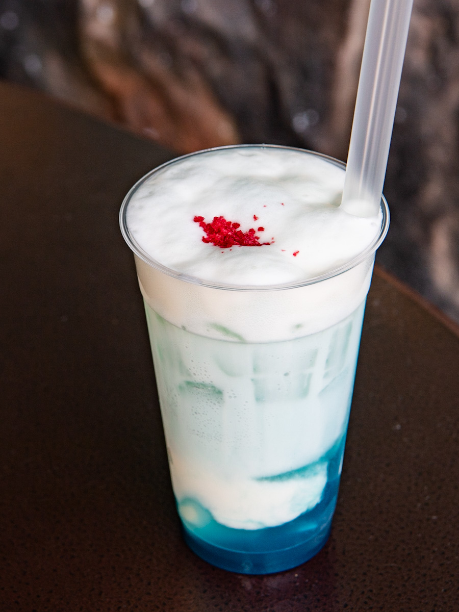 今回はそんな「ヴォルケイニア・レストラン」で提供されているスパークリングピーチドリンク(豆花&チーズクリーム)を紹介します☆