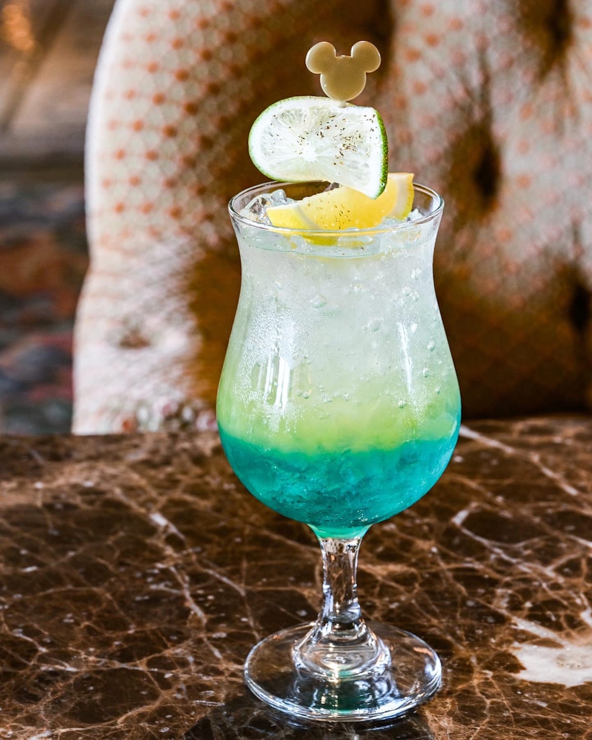 マンゴージュース、グリーンアップルシロップ、ブルーシロップ、レモンジュース、スプライト入りの爽やかなドリンクメニュー。
