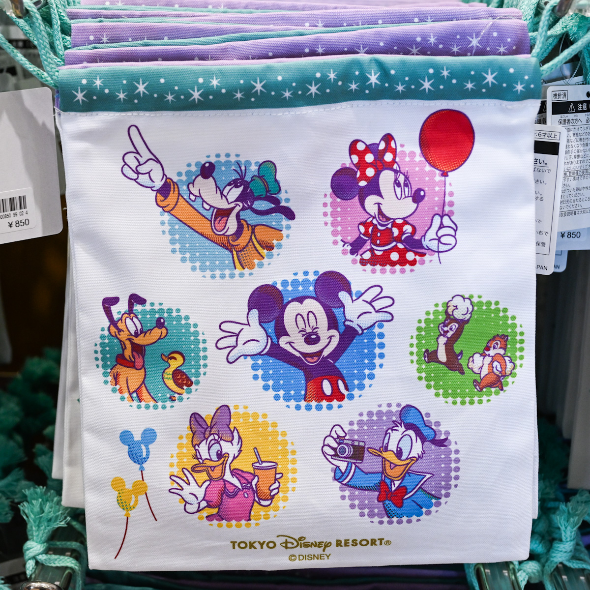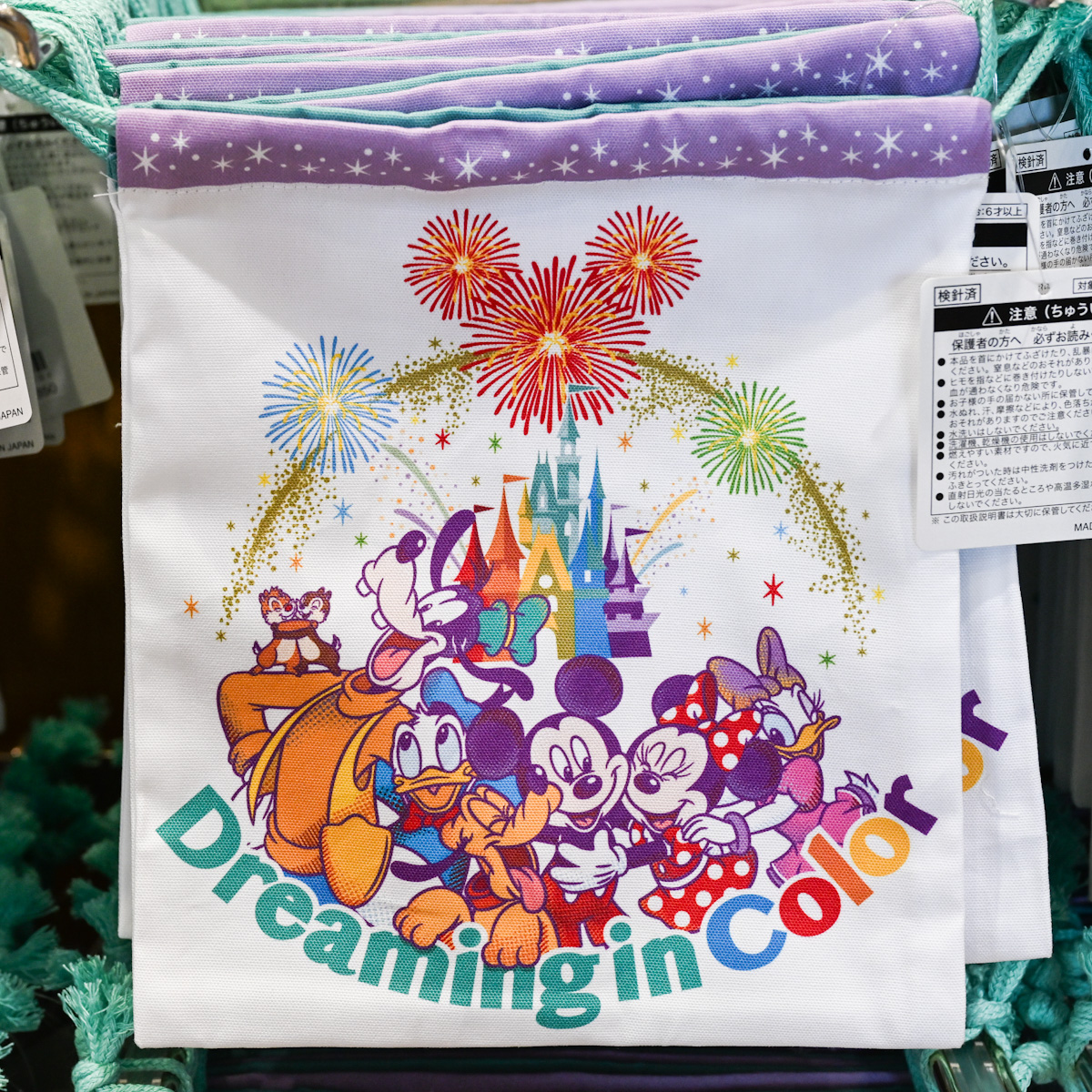カラフルなシンデレラ城、「ミッキー&フレンズ」がデザインされたきんちゃく。