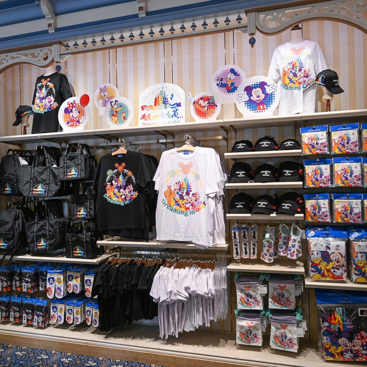 「色とりどりのパークの魅力に触れながら、夢の世界を楽しんでほしい」という意味が込められた“Dreaming in Color”グッズ。