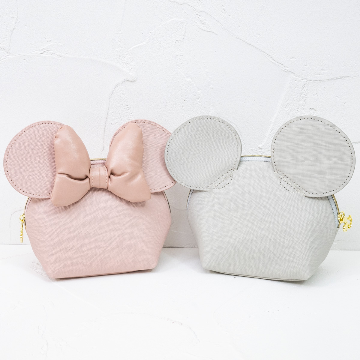 くすみカラーが大人かわいい「ミッキーマウス」と「ミニーマウス」モチーフのポーチ。