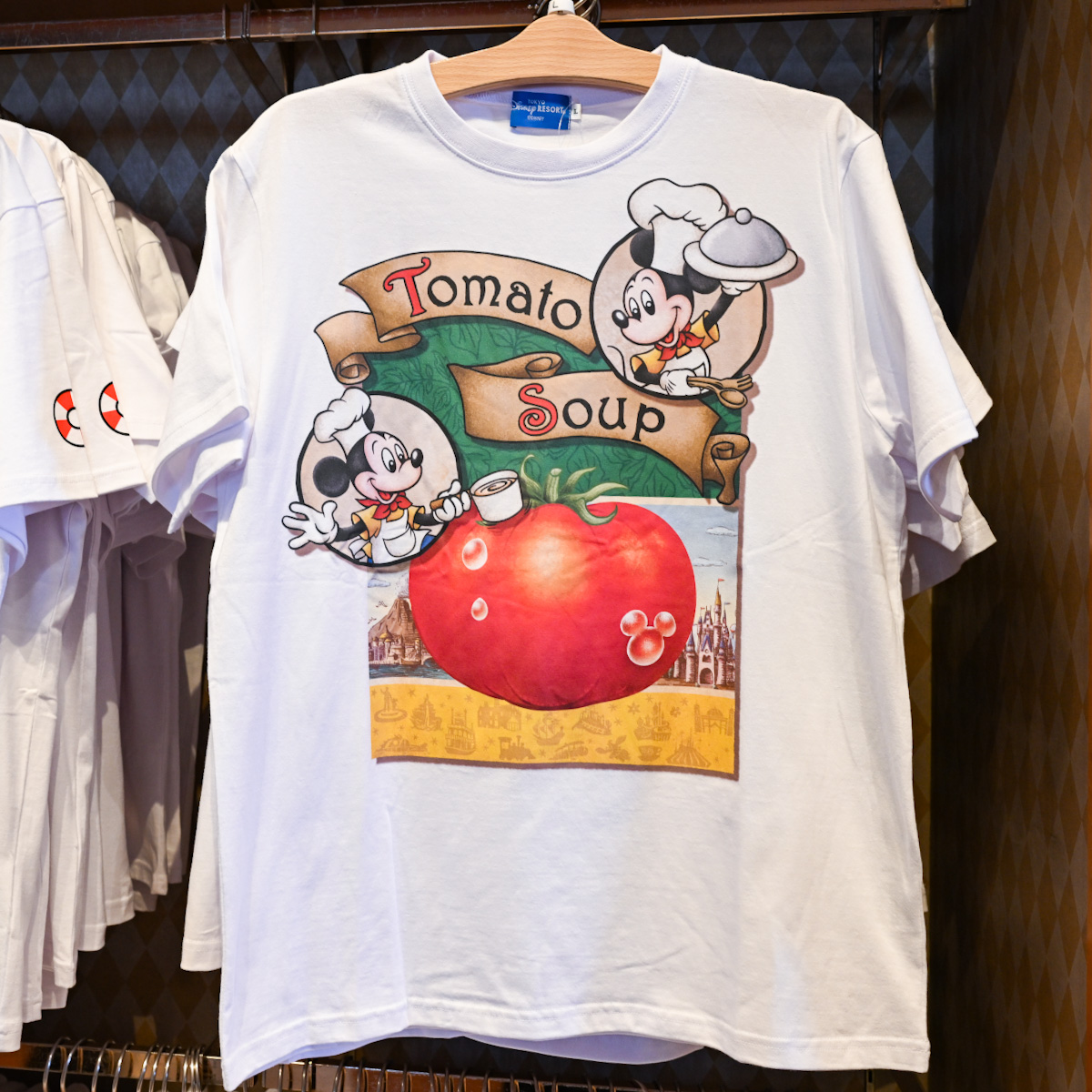トマトスナック缶デザイン!東京ディズニーランド「ミッキーマウス」Tシャツの紹介でした。