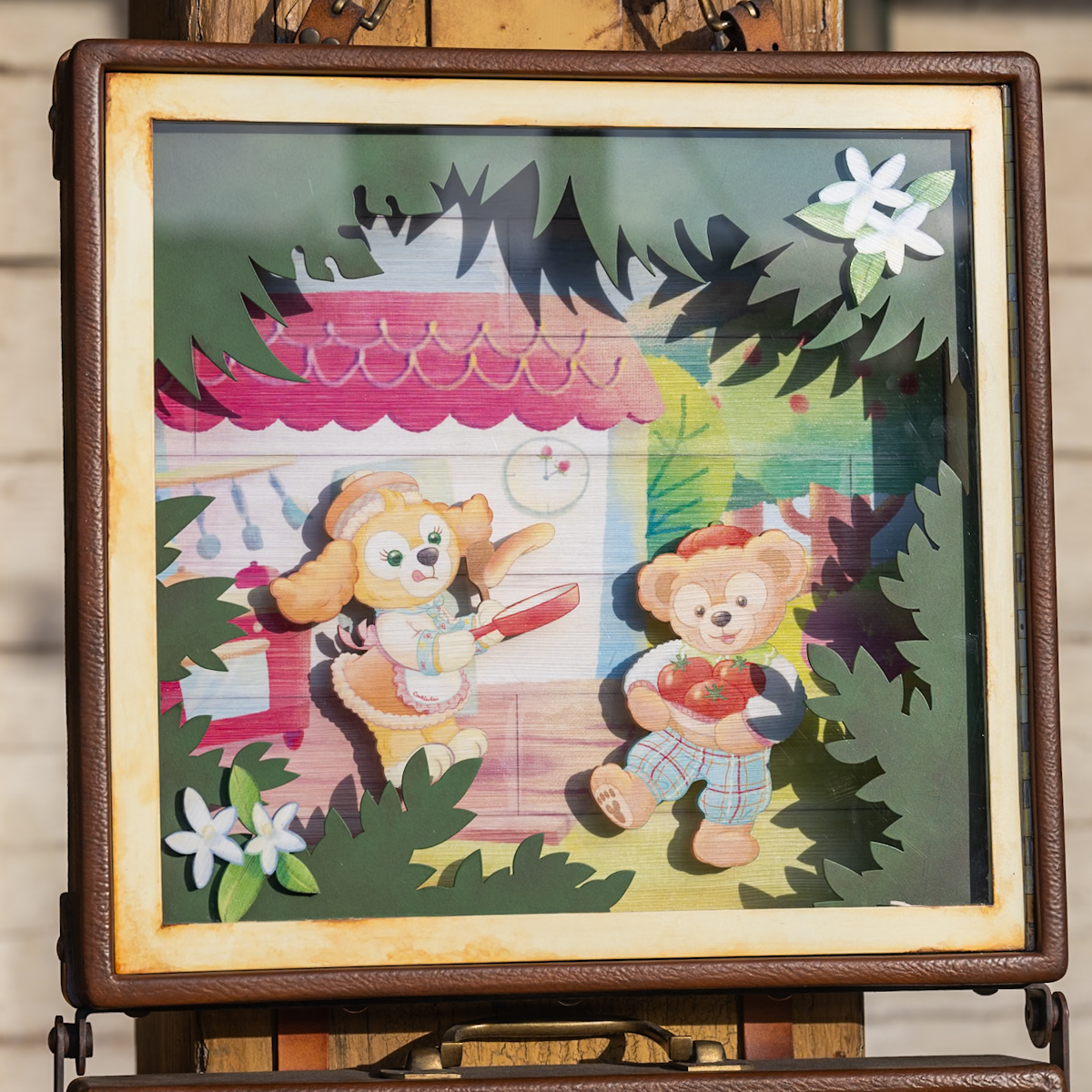 裏面にはダッフィーたちが森へ食材を探しに行っていたり一緒にパンケーキを作って楽しんでいる様子がデザインされています。
