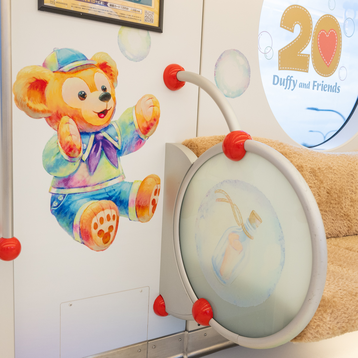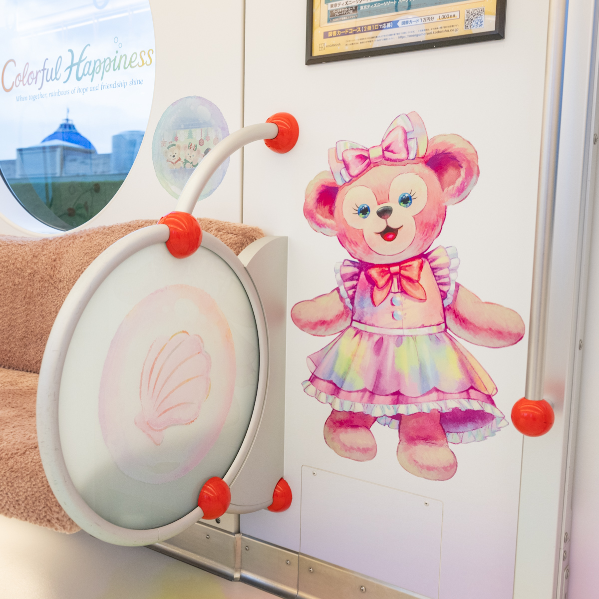 ダッフィー&フレンズイメージの座席シートやシャボン玉デザインがかわいいモノレールです☆