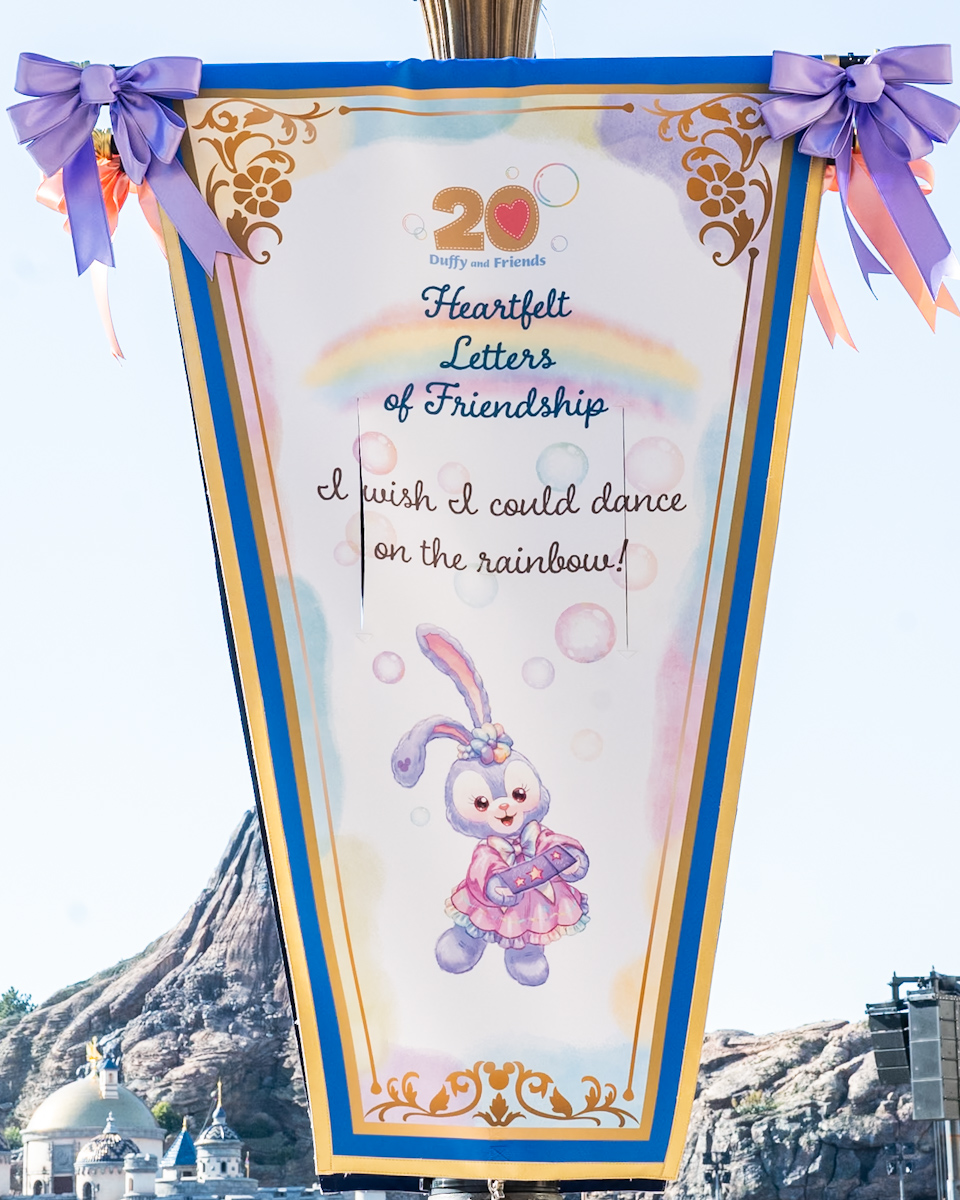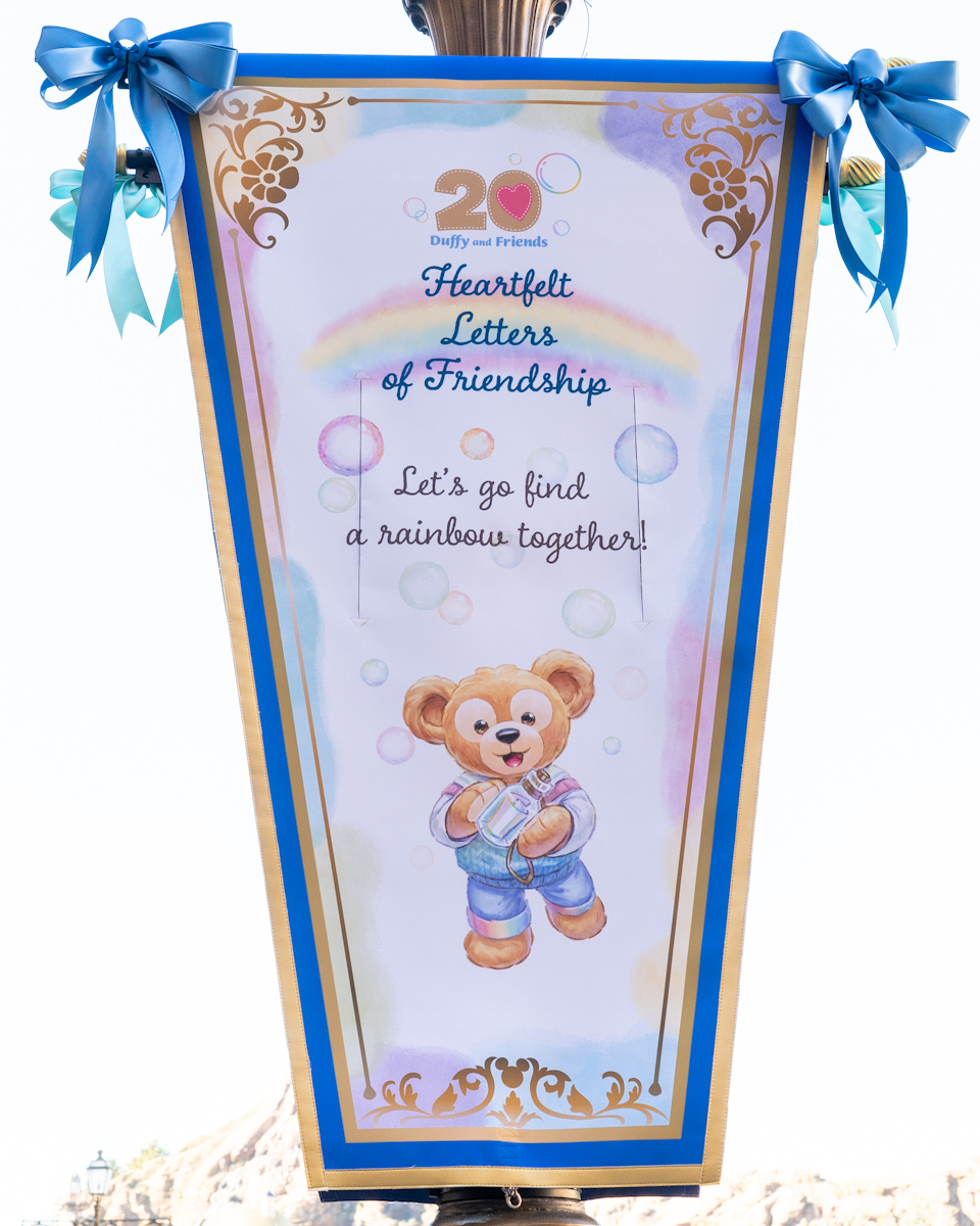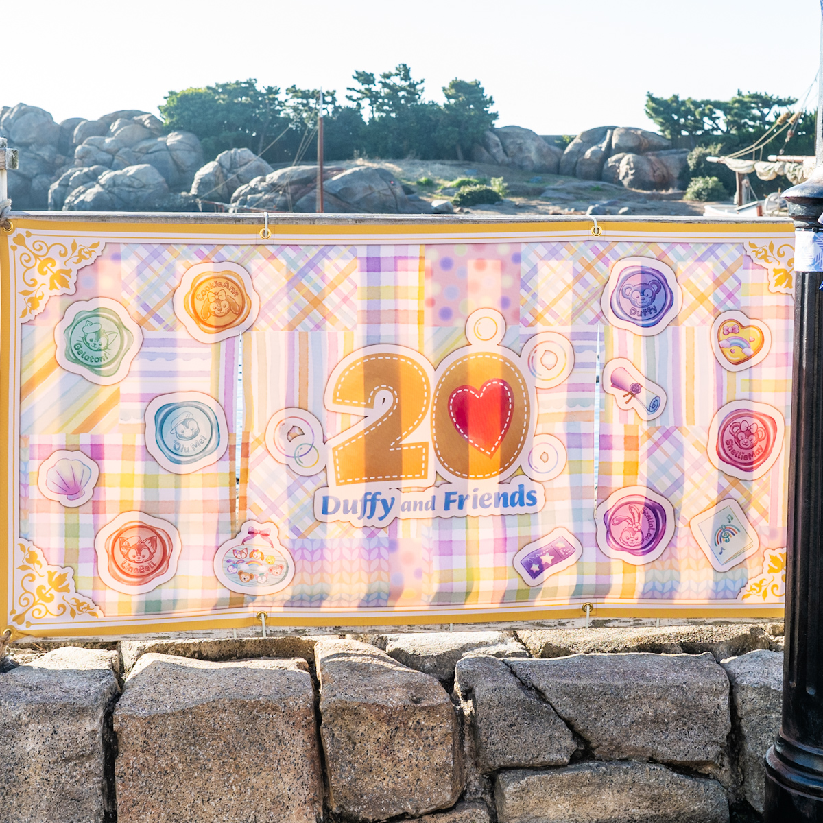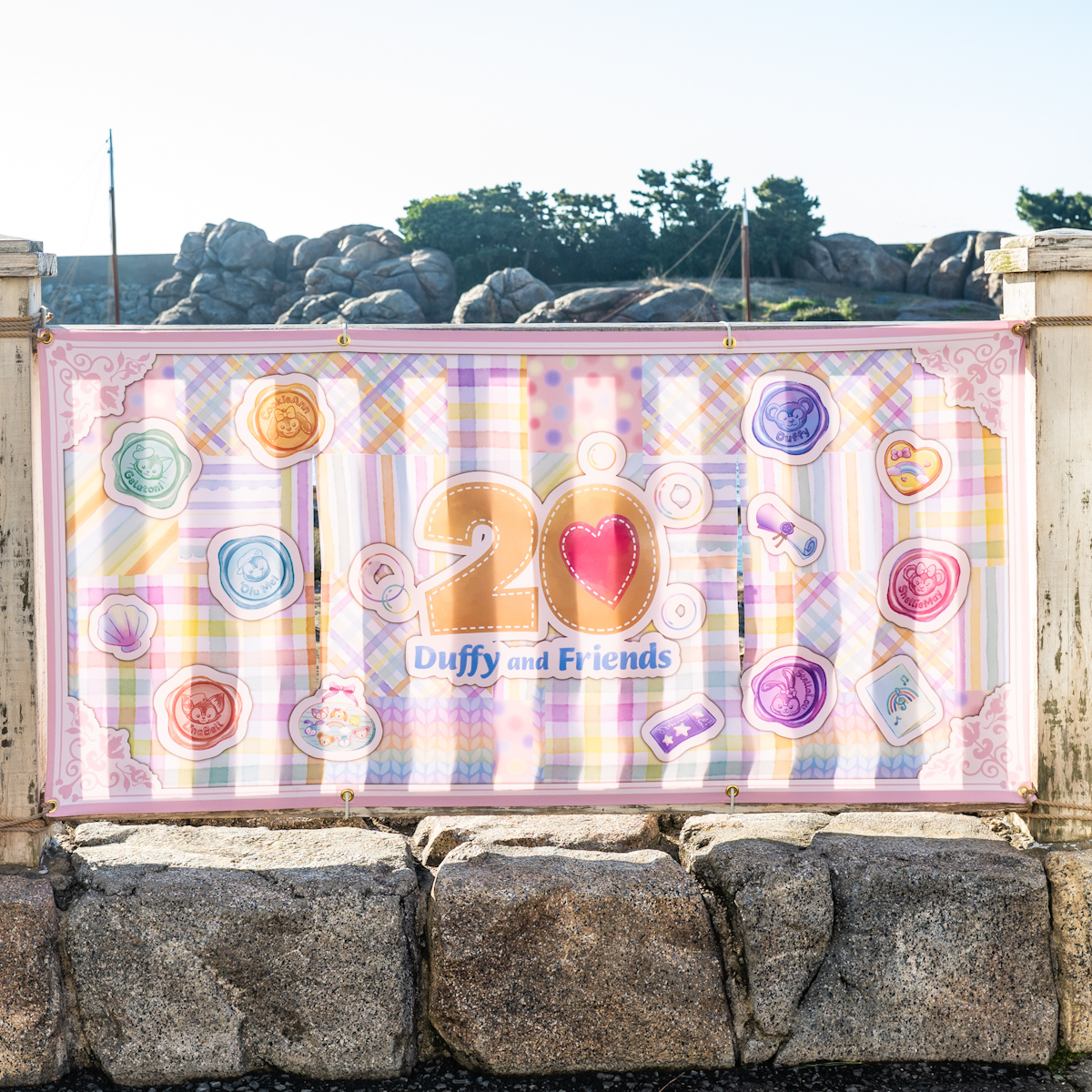 ダッフィー&フレンズ20周年:カラフルハピネスのバナーが登場。