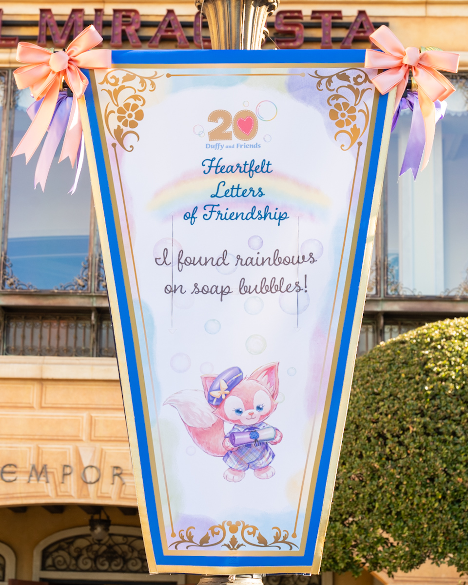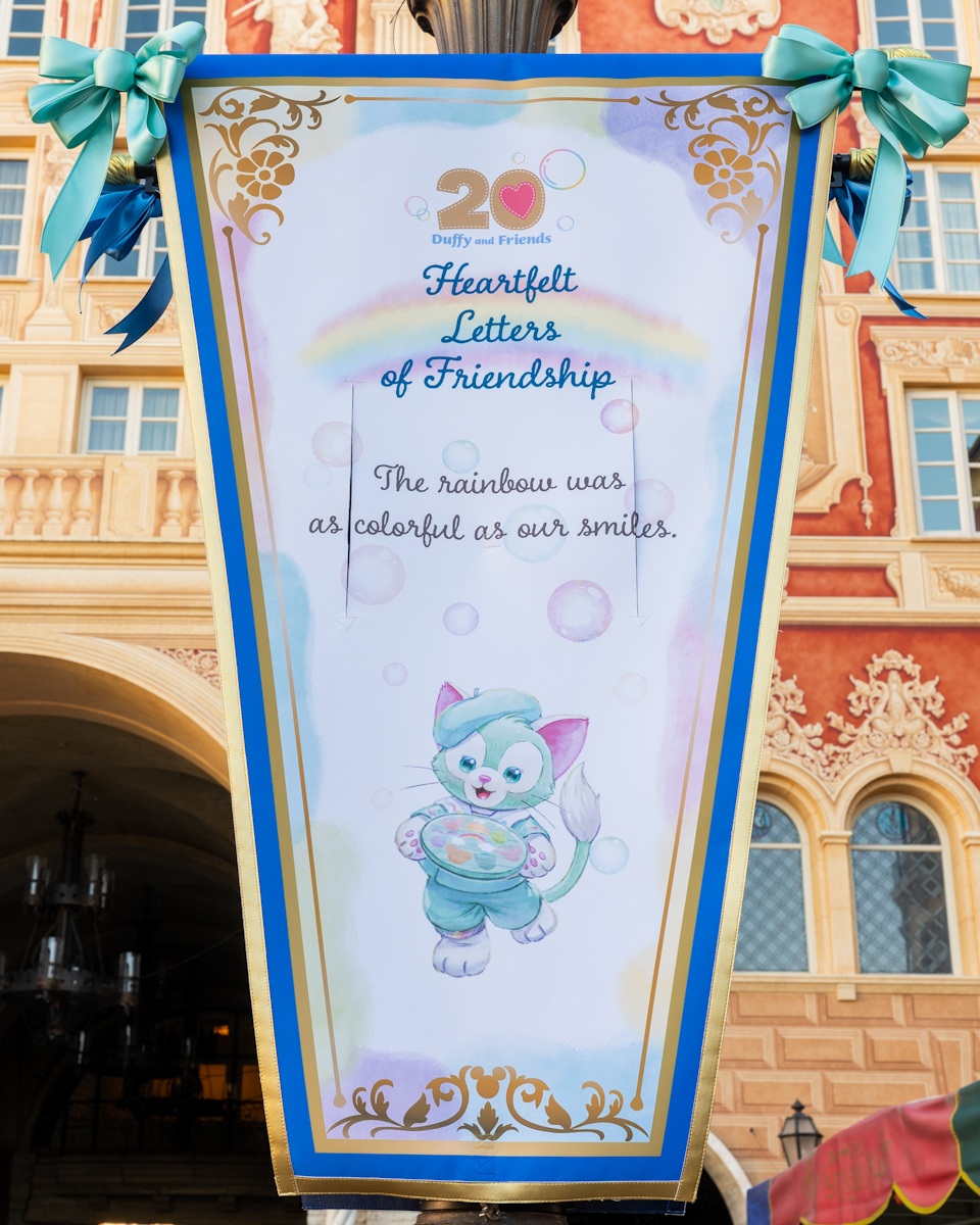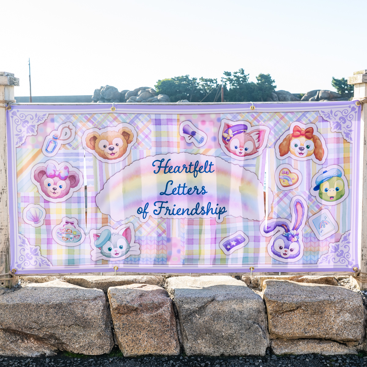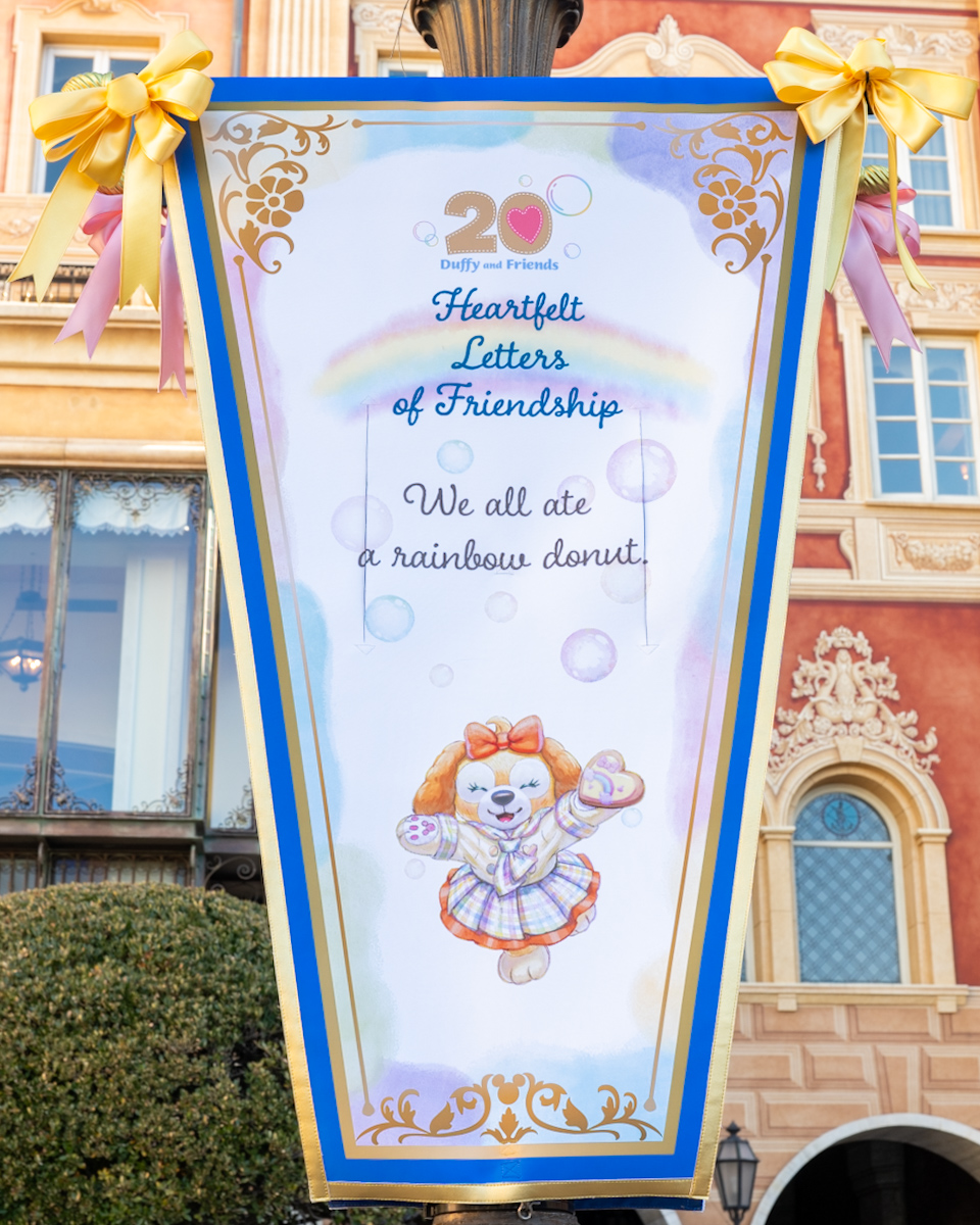 ダッフィー&フレンズ20周年:カラフルハピネスのバナーが登場。