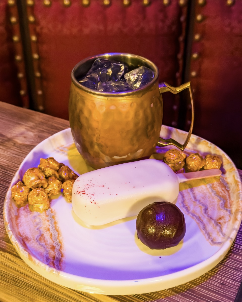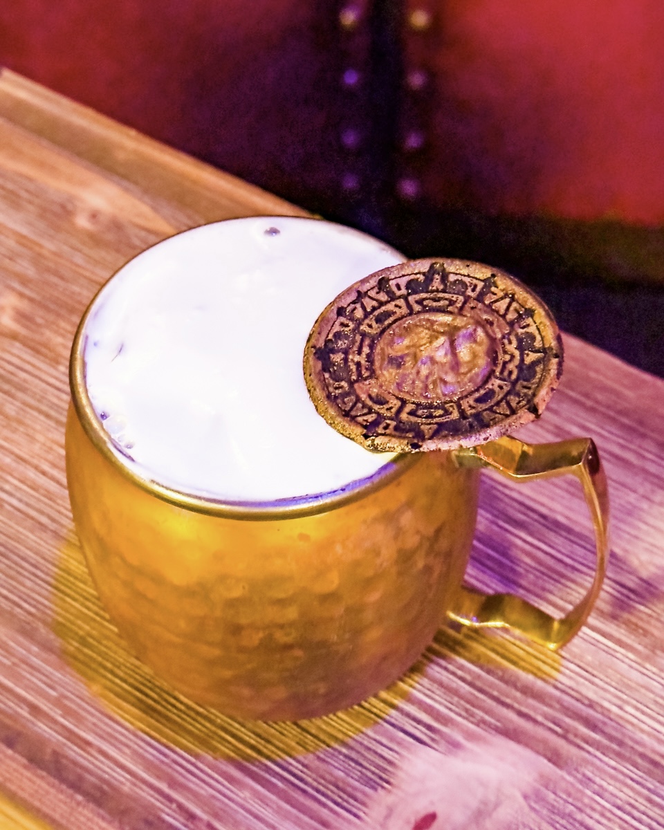 注目は、バーの中心に置かれた「エンチャンテッド・ラム・ボトル」。