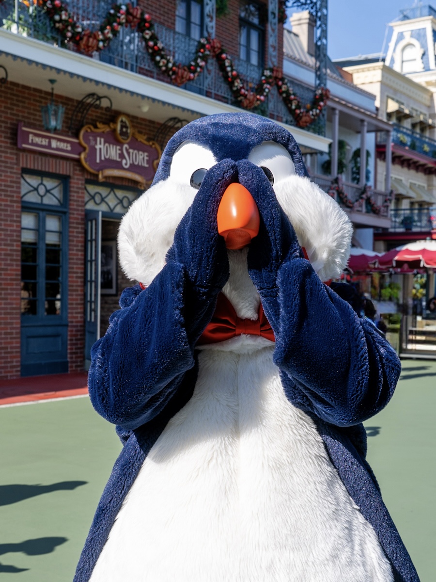 東京ディズニーランドのワールドバザールに、ディズニー映画『メリー・ポピンズ』に登場する「ペンギン・ウェイター」がキャラクターグリーティングに久しぶりに登場!