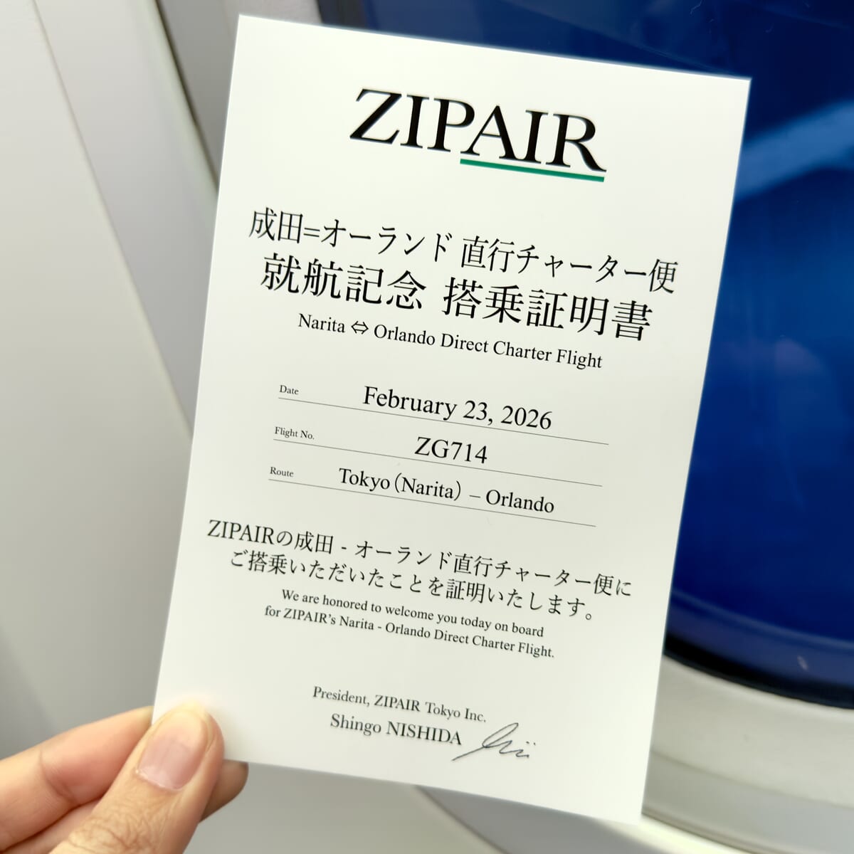 ZIPAIRが、日本からフロリダ州オーランドへの【史上初】となる直行チャーター便(旅客便)を2026年2月から3月にかけて運航することを発表!