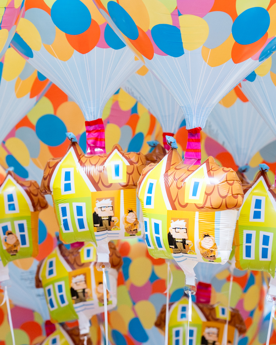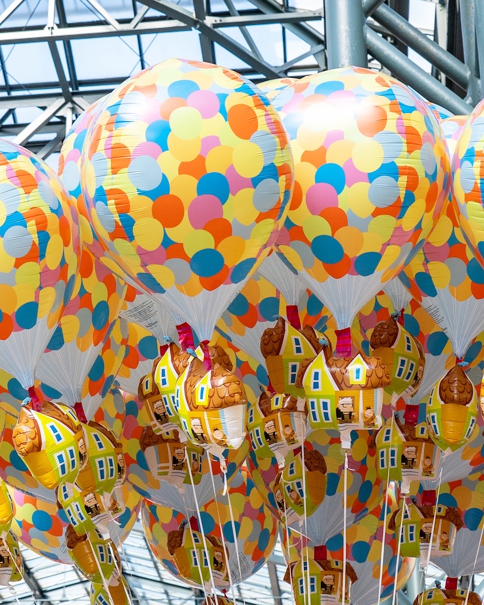 映画の中で、カールじいさんが家に数千個の風船を結びつけて旅立つ象徴的なシーンモチーフ!