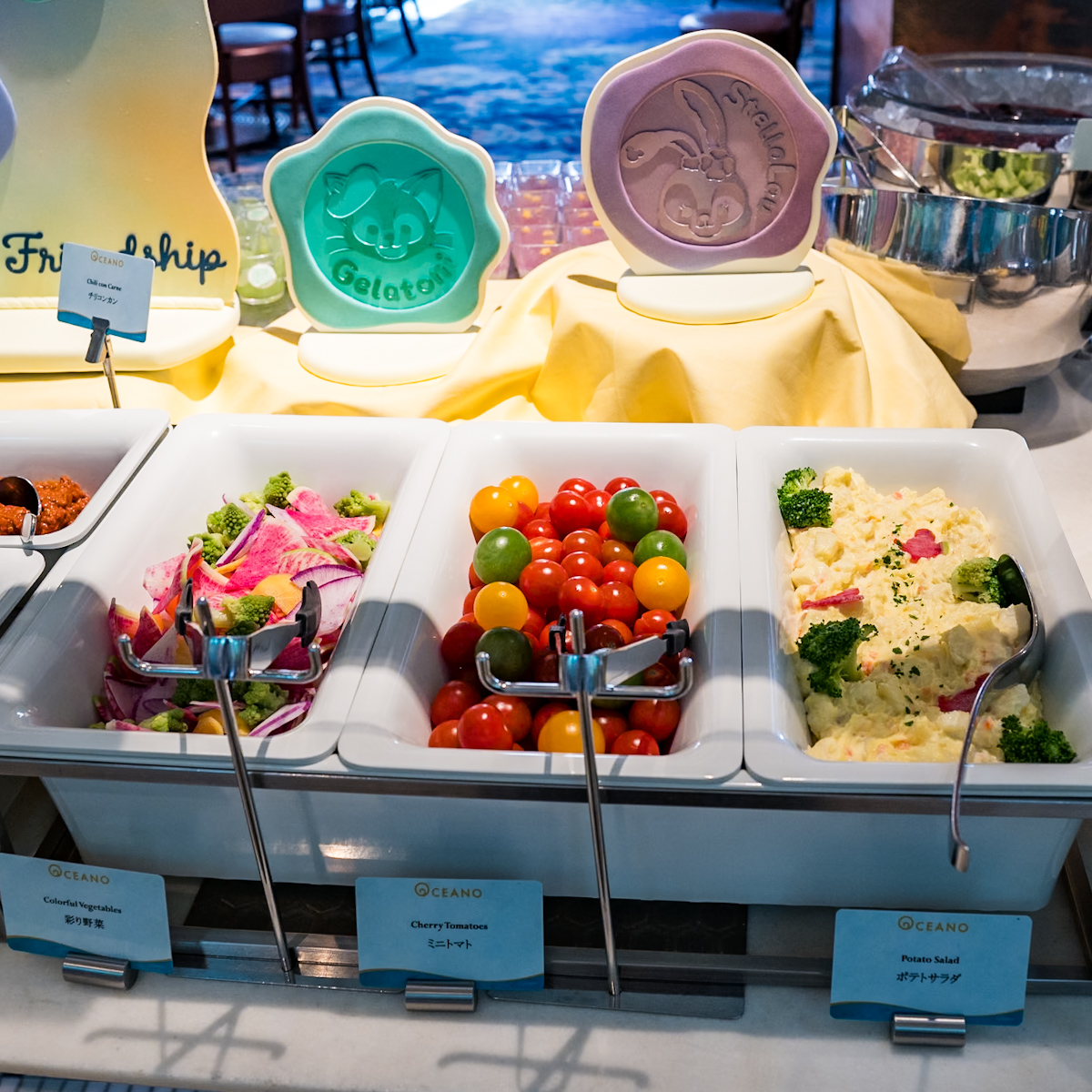 ダッフィー&フレンズ7人がモチーフのデザートや種類豊富な地中海料理がそろったオチェーアノのブッフェ☆