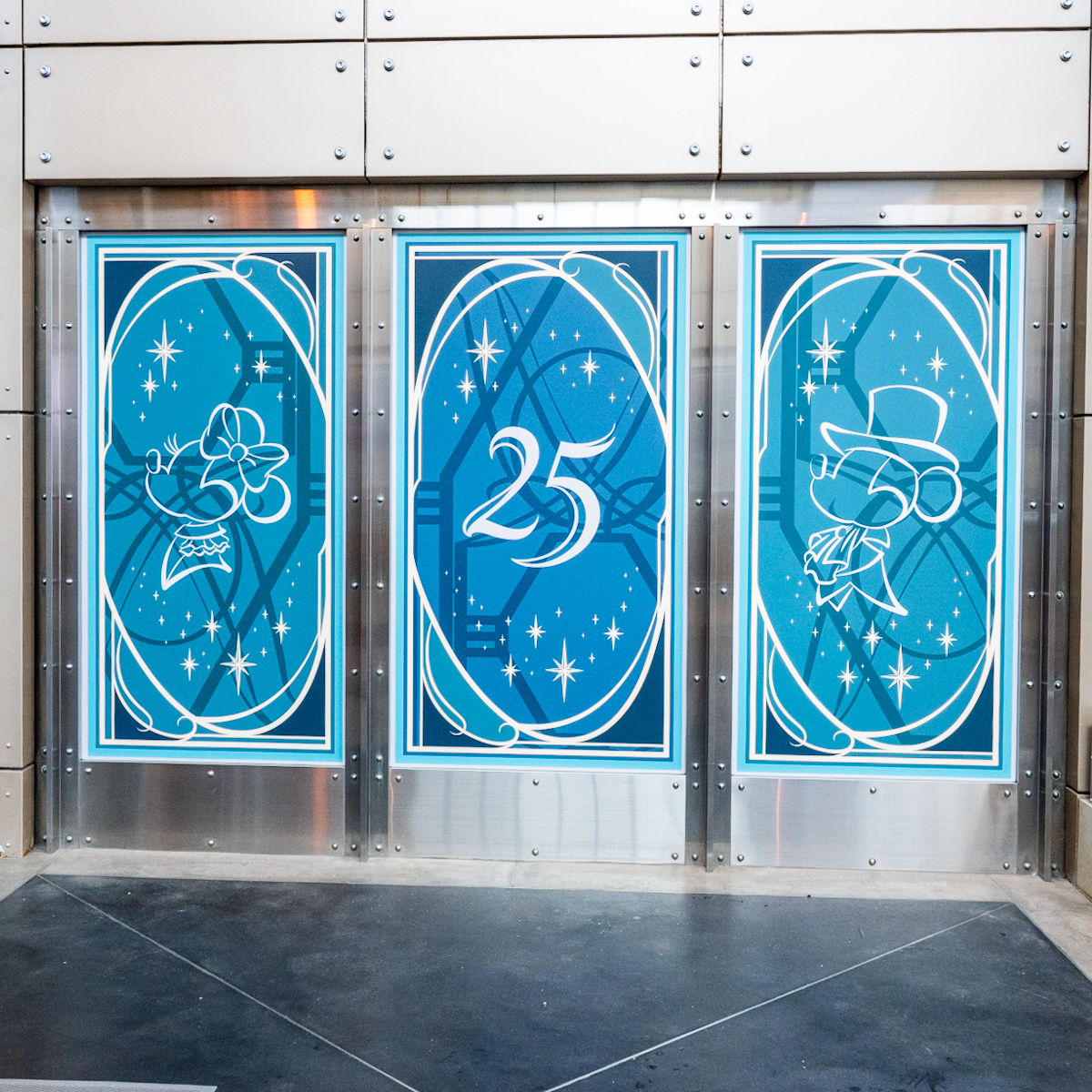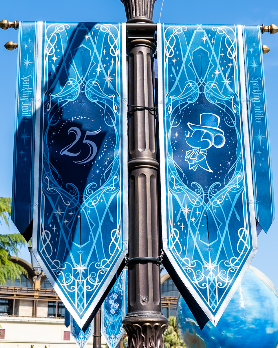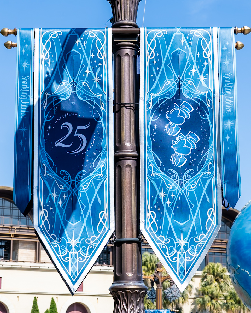 25周年のロゴとミッキー&フレンズのシルエットがデザインされたバナーが登場しています。