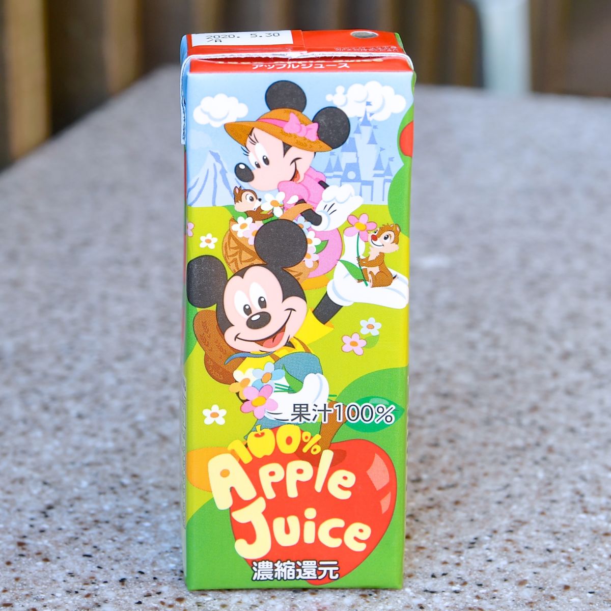 アップルジュースにはお花摘みを楽しむミッキーマウス、ミニーマウス、チップ、デール☆