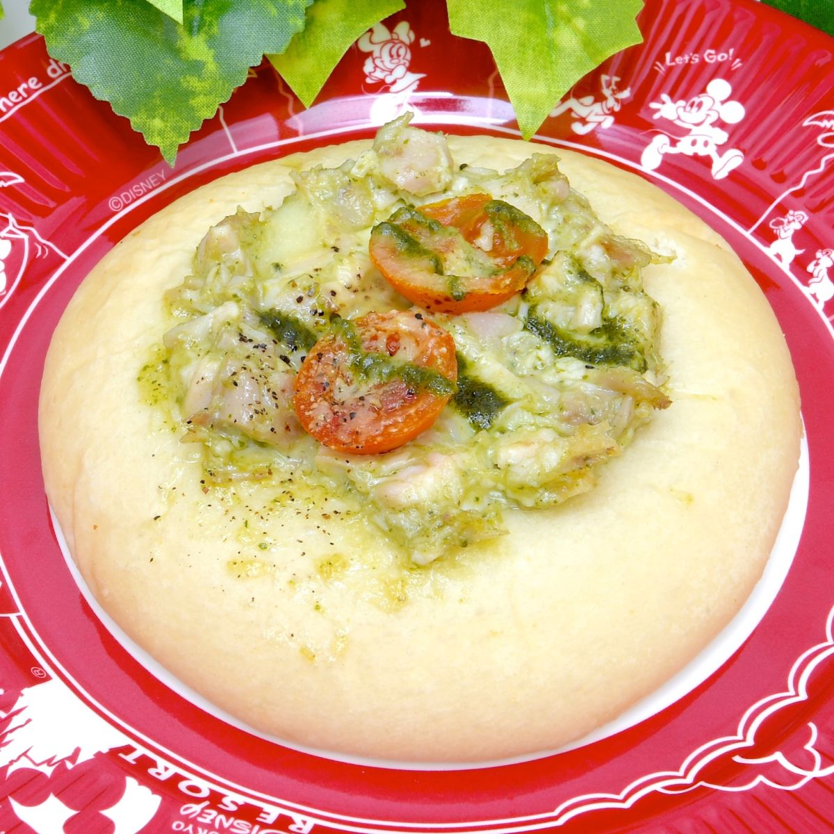 バジルソースで和えられたチキンたっぷりのフォカッチャ。