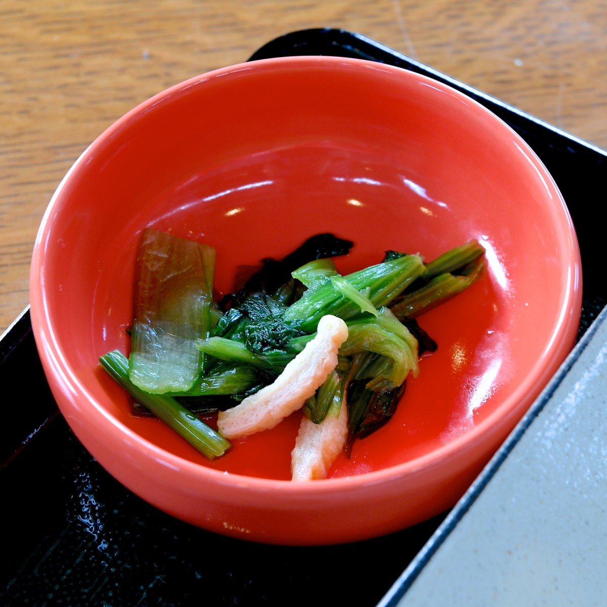 付けあわせの水菜サラダはさっぱりとした梅ドレッシングでいただきます。