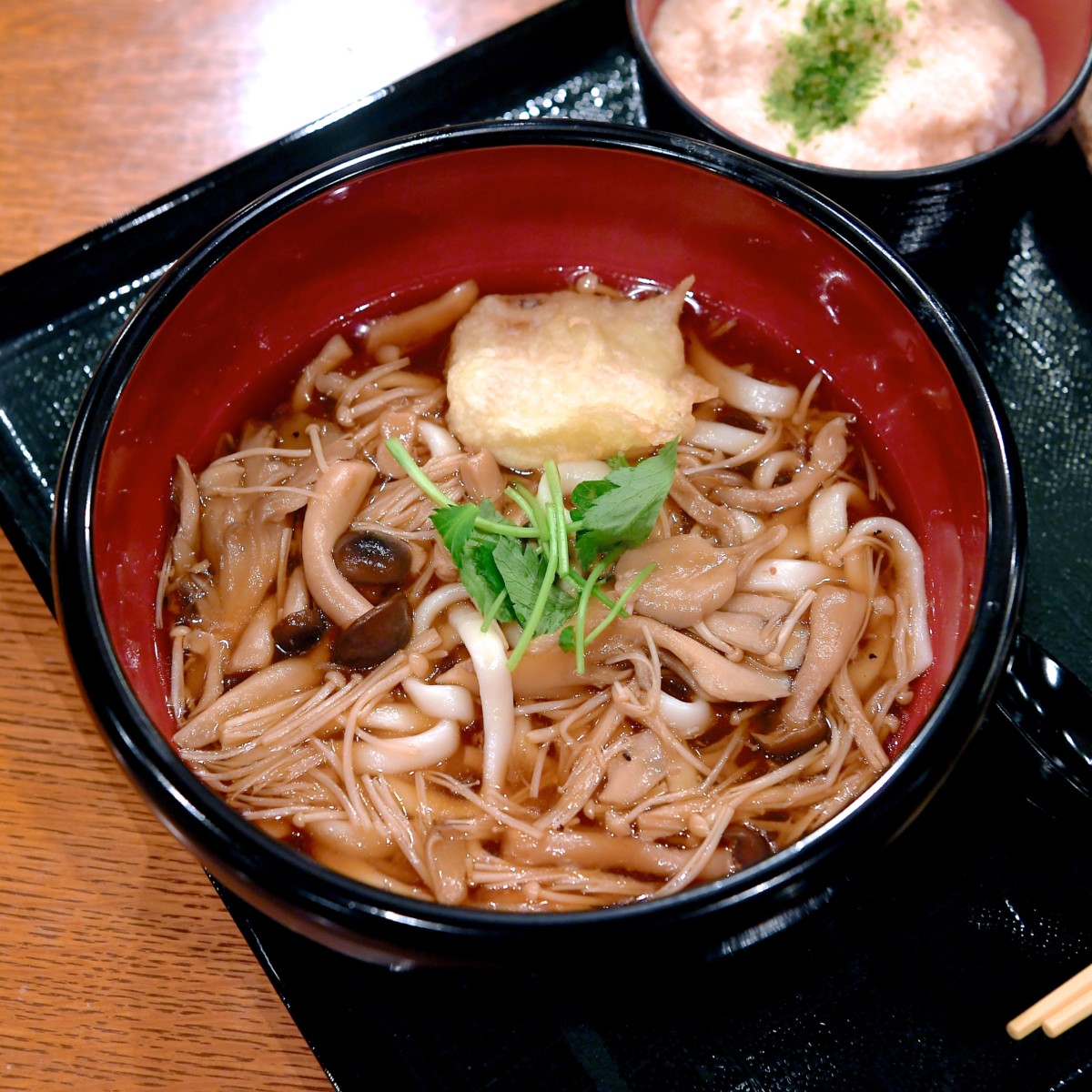 秋の味覚であるきのこがたっぷりトッピングされたレストラン櫻2018年秋の季節のうどん膳。