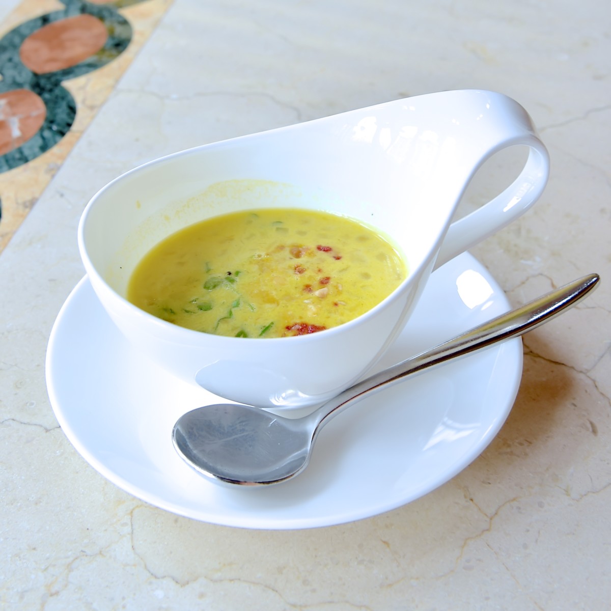 「リストランテ・ディ・カナレット」秋冬限定のおすすめのスープは、具沢山で色鮮やかなクリームスープ。