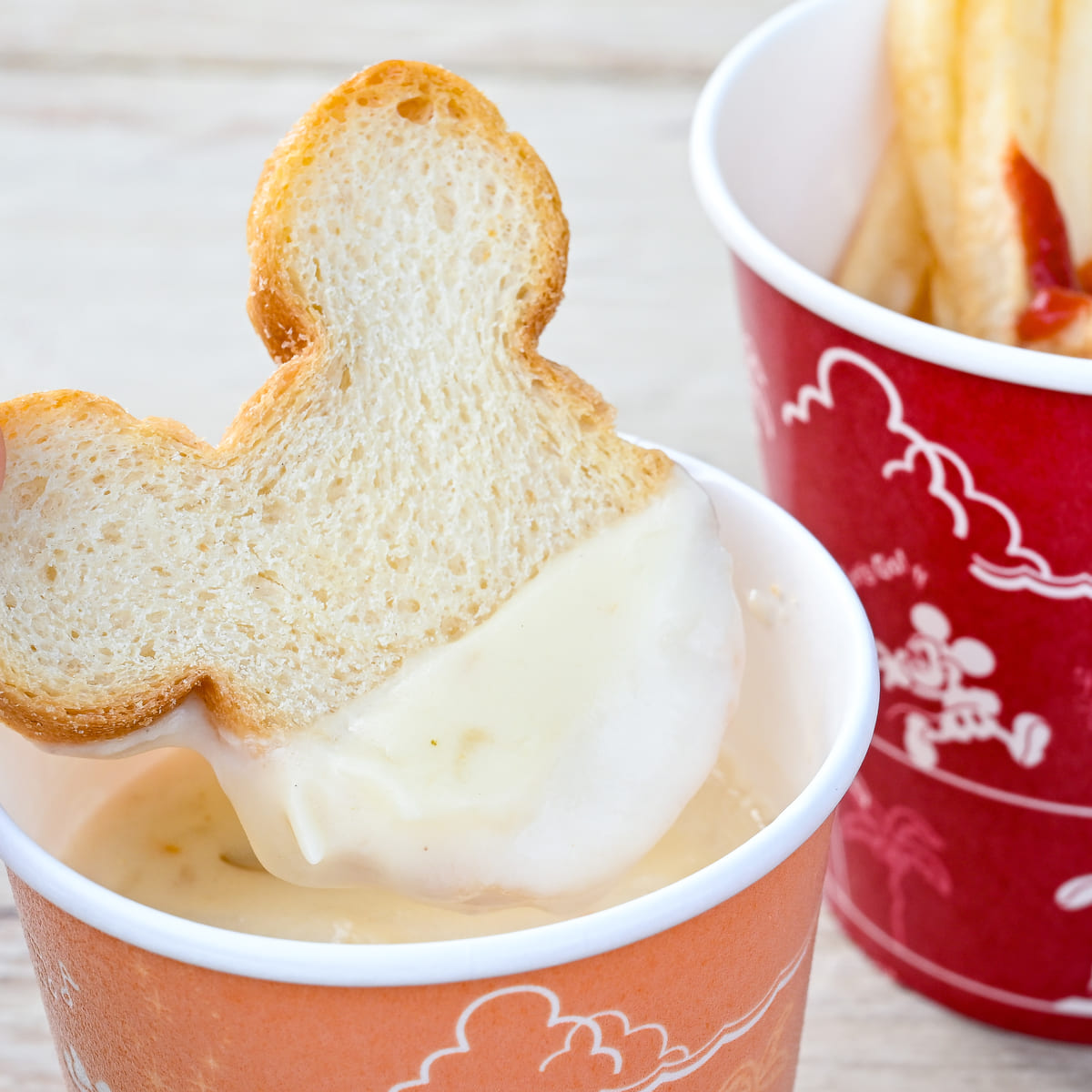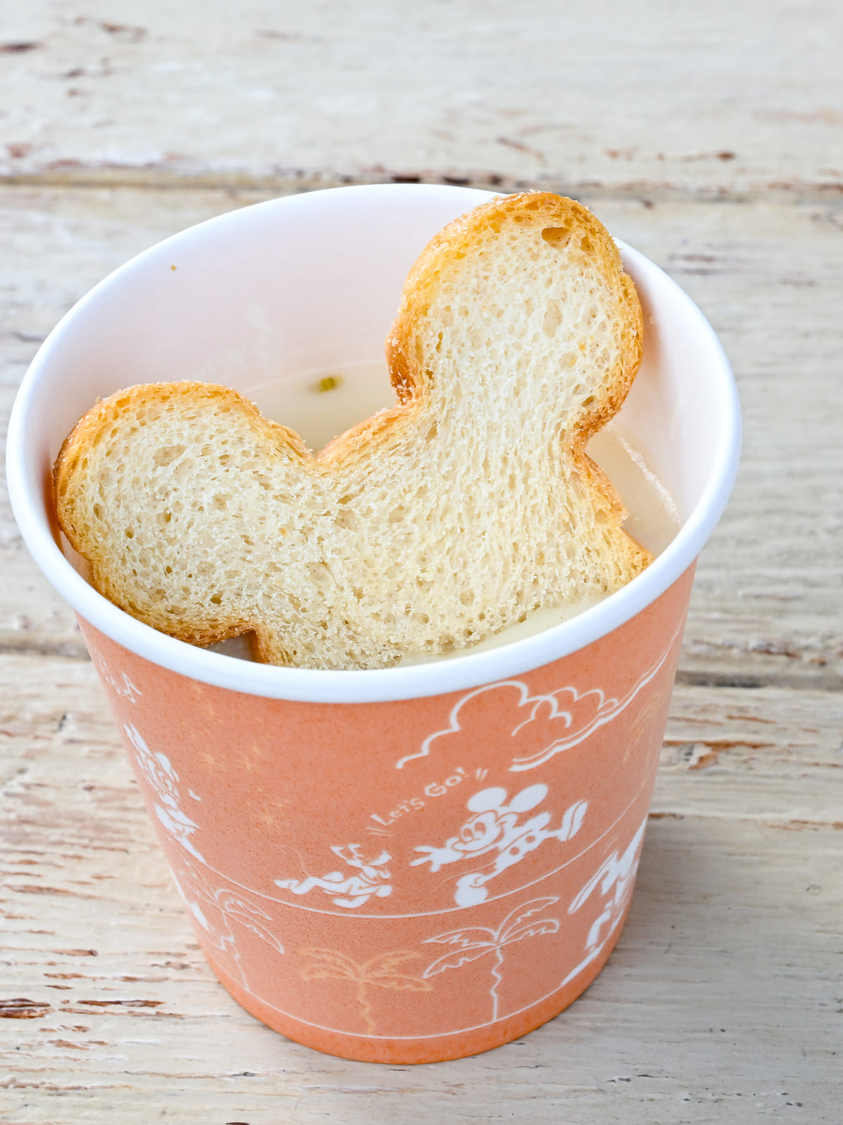 ミッキーシェイプのラスクがトッピングされています。