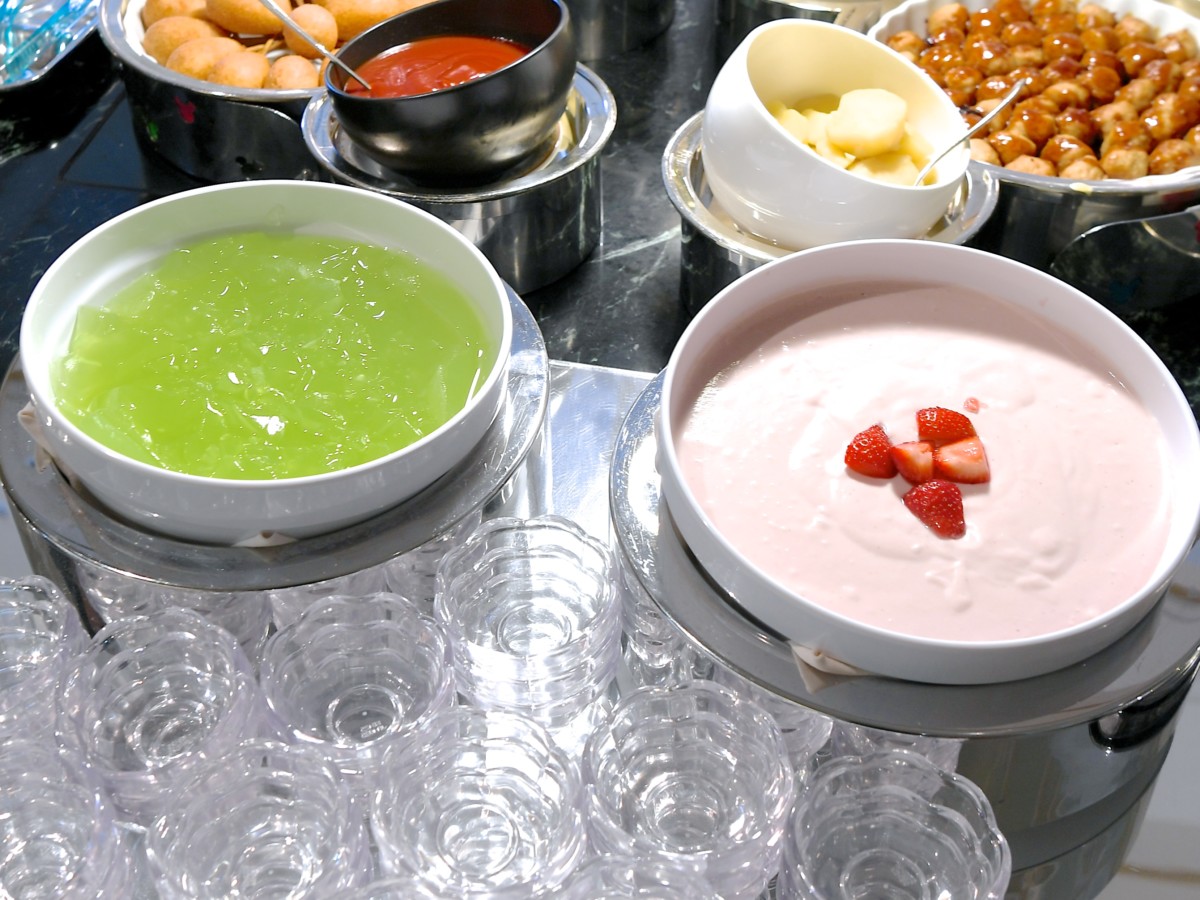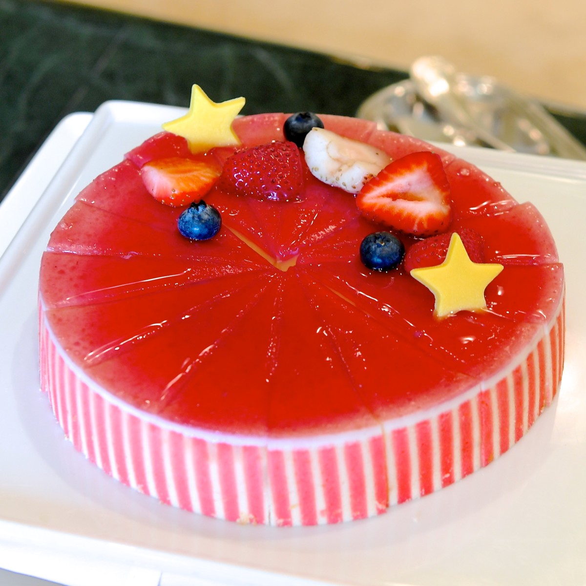 お子様に大人気のマスカットゼリーに加え、ストロベリーパンナコッタも提供されています。