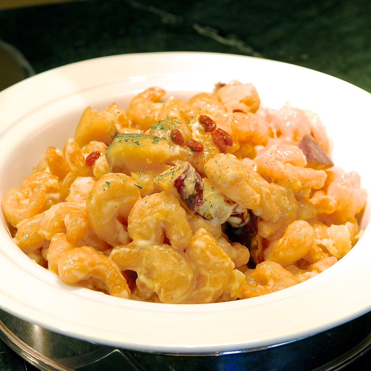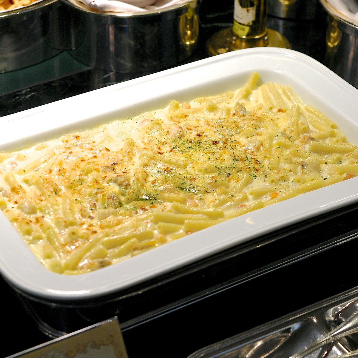 お子様でも食べやすいショートパスタのシーフードグラタン。