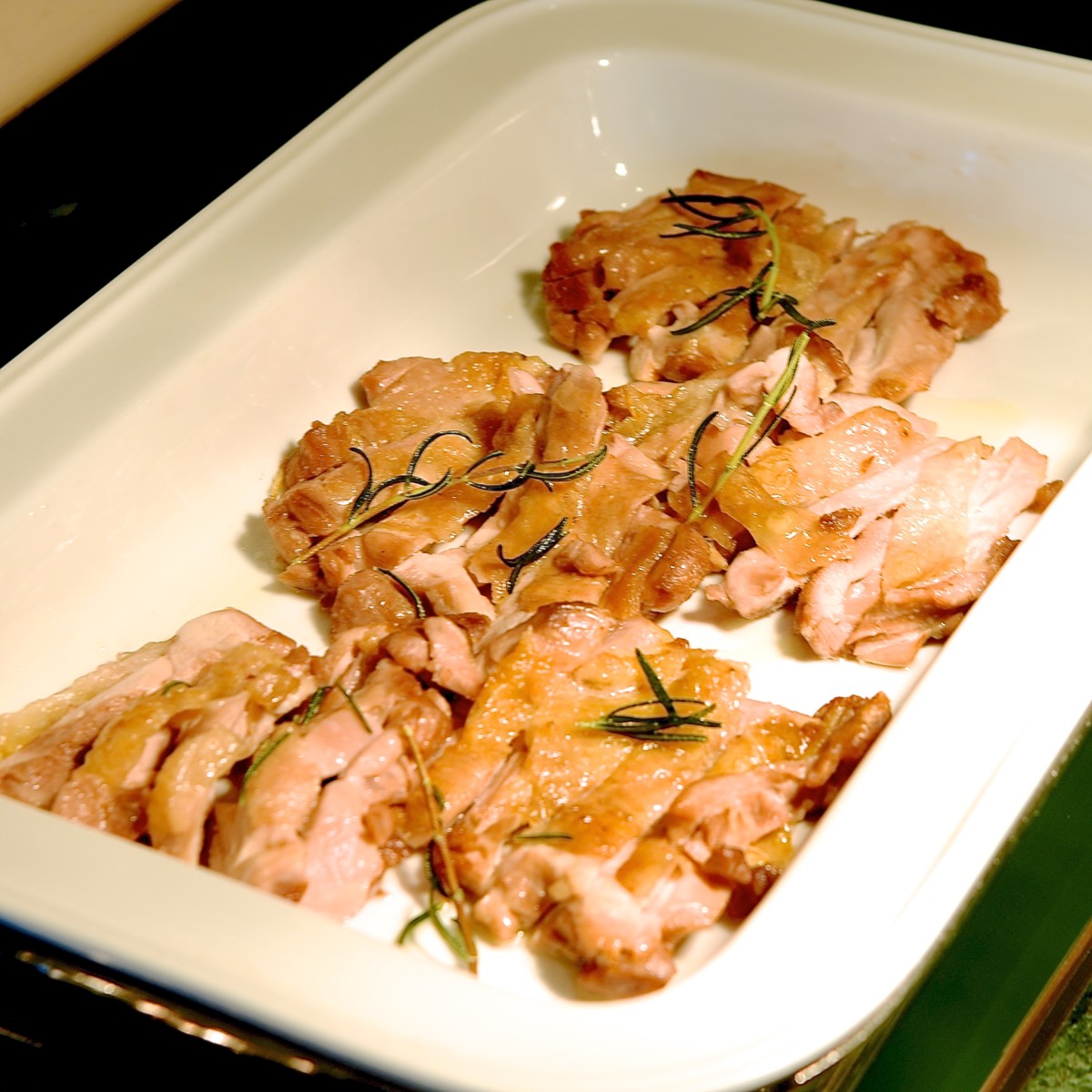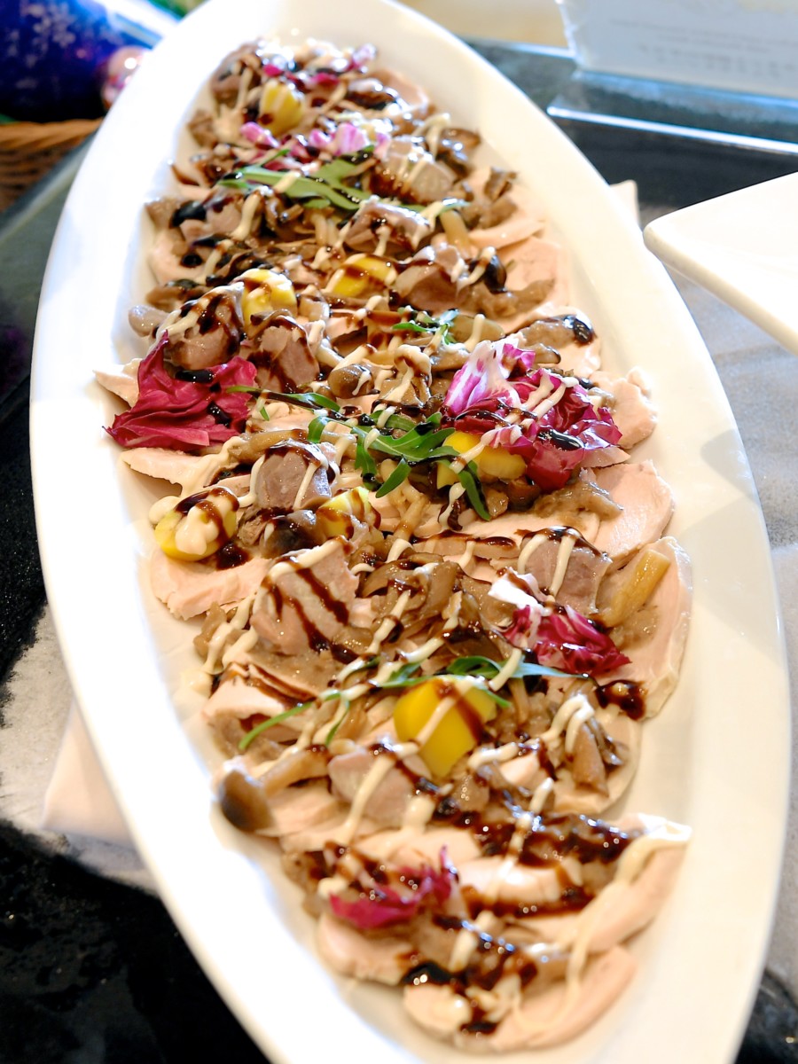 チキンと砂肝のサラダは玉ねぎの甘さが引き出されたデュクセルソースで。