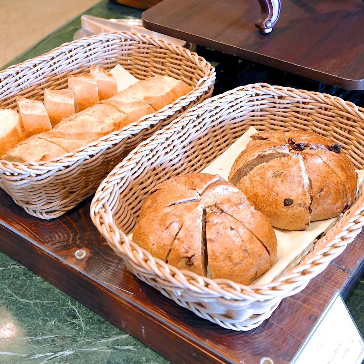 お食事に合わせやすいバケットとレーズン&ピーカンナッツブレッド。