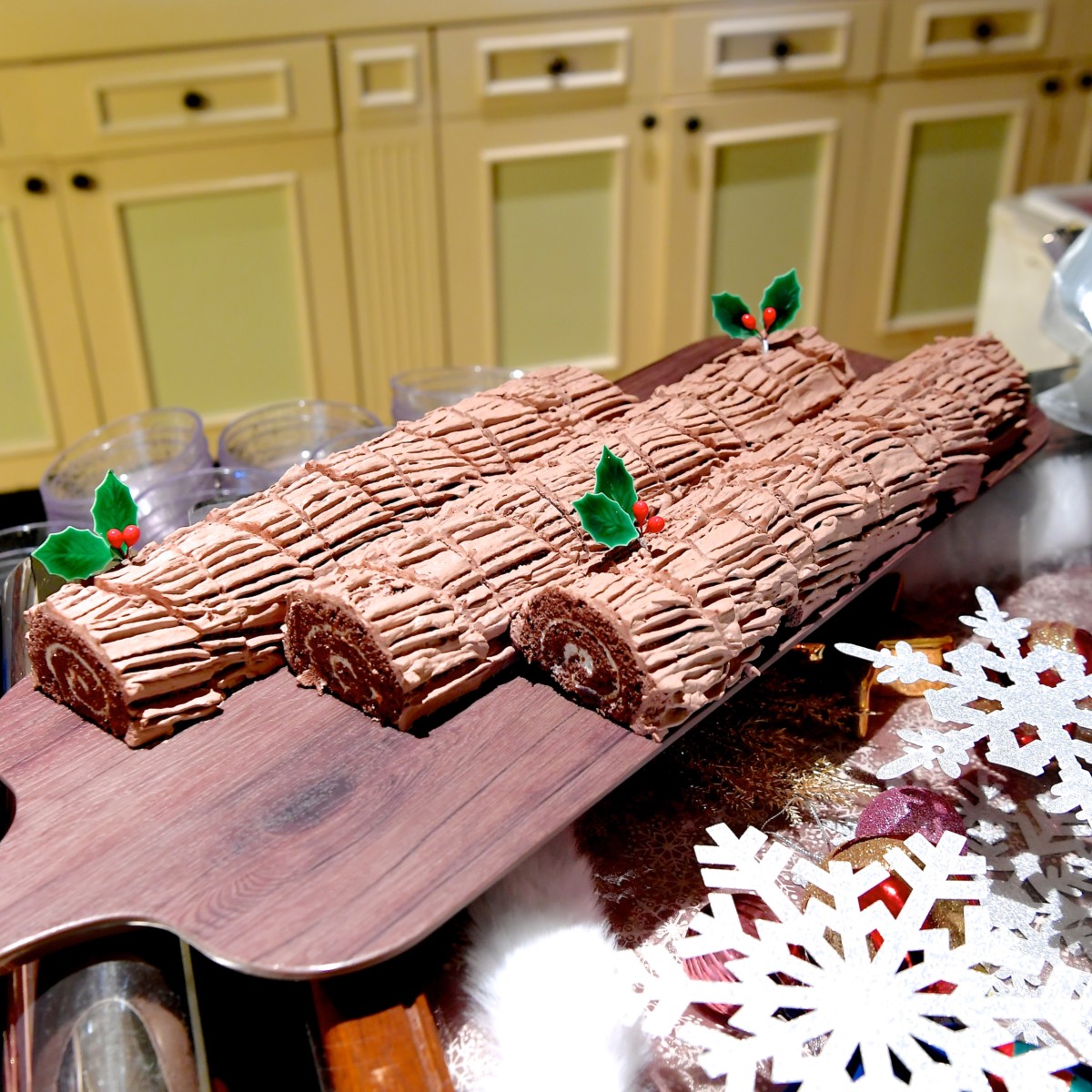 スペシャルデザートはクリスマスの定番ブッシュ・ド・ノエルとカシスのシャーベット。