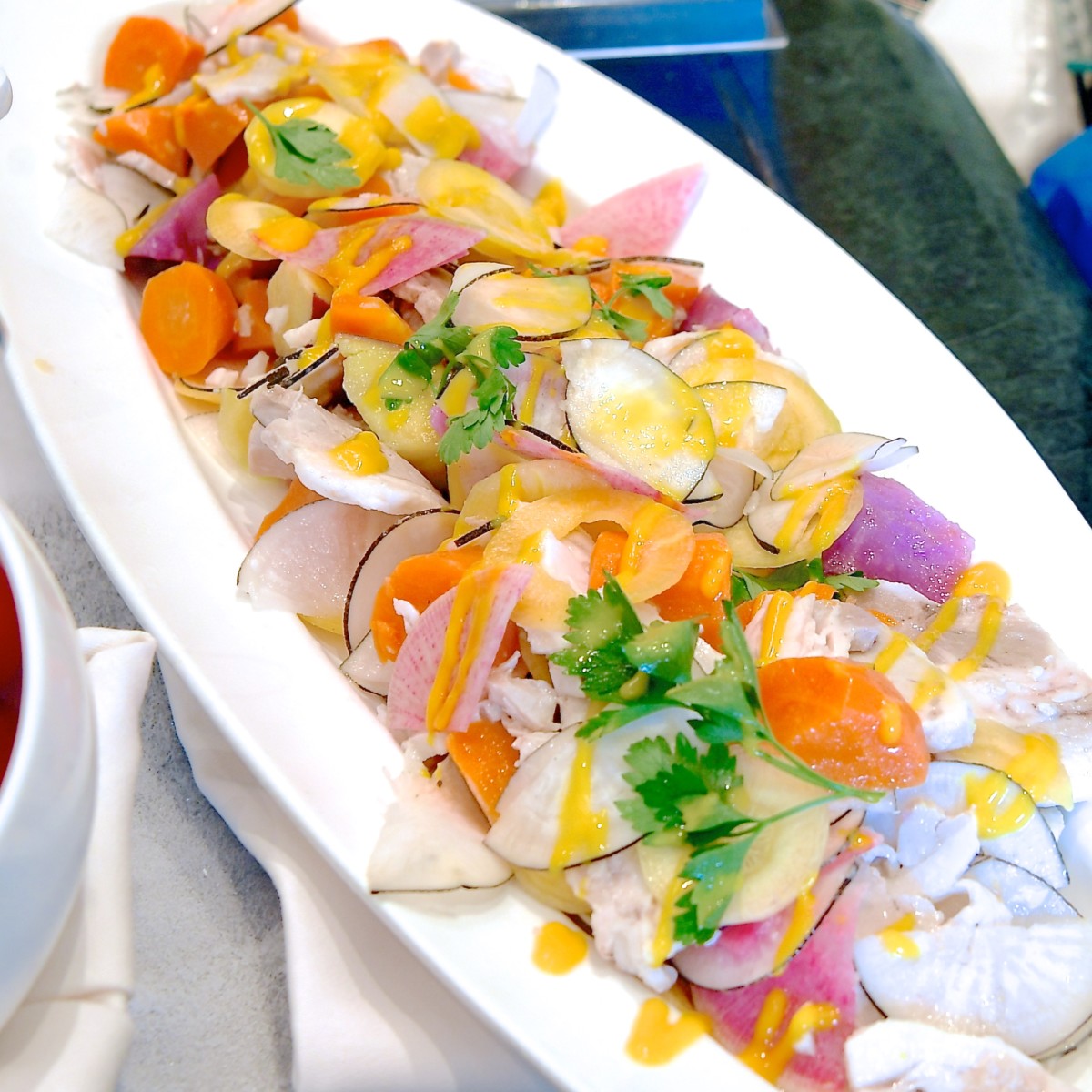 チキンの色あざやかな野菜のサラダ。
