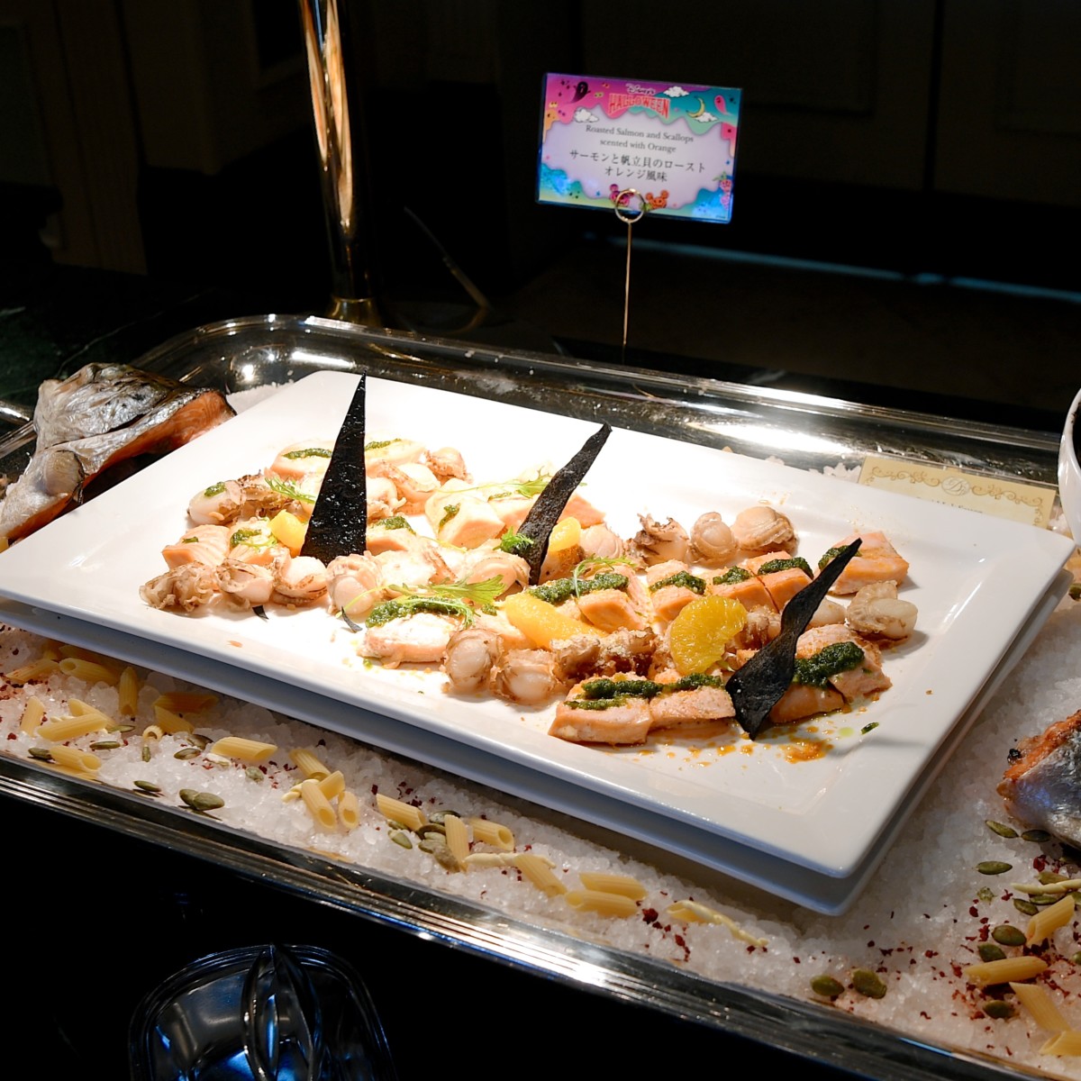 サーモンと帆立貝のロースト オレンジ風味