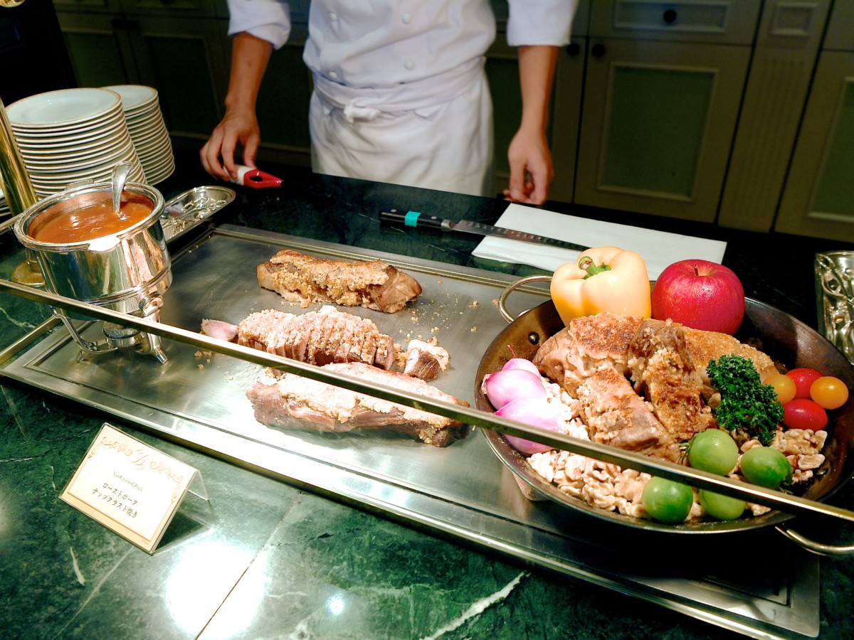 シェフが切り分けてくれるローストポーク。