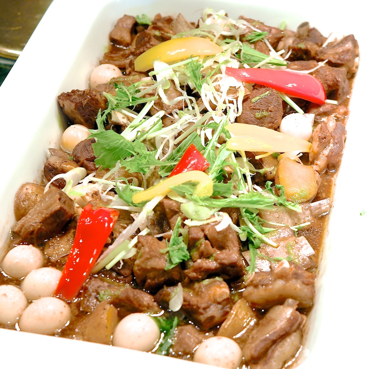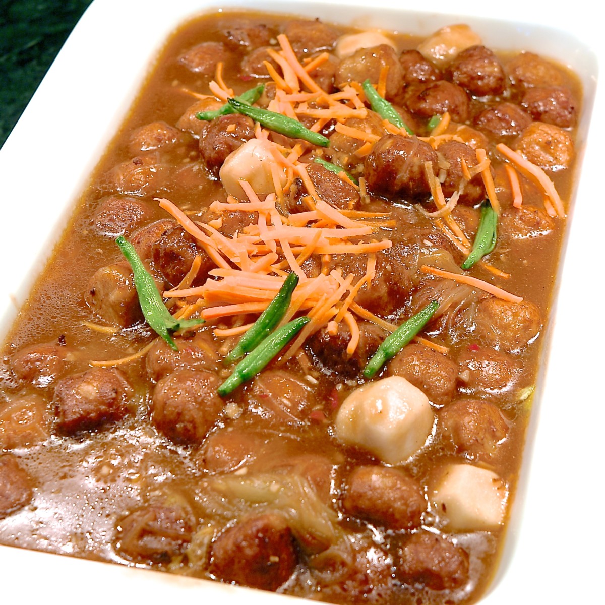 肉団子と里芋のXOソースがけ。