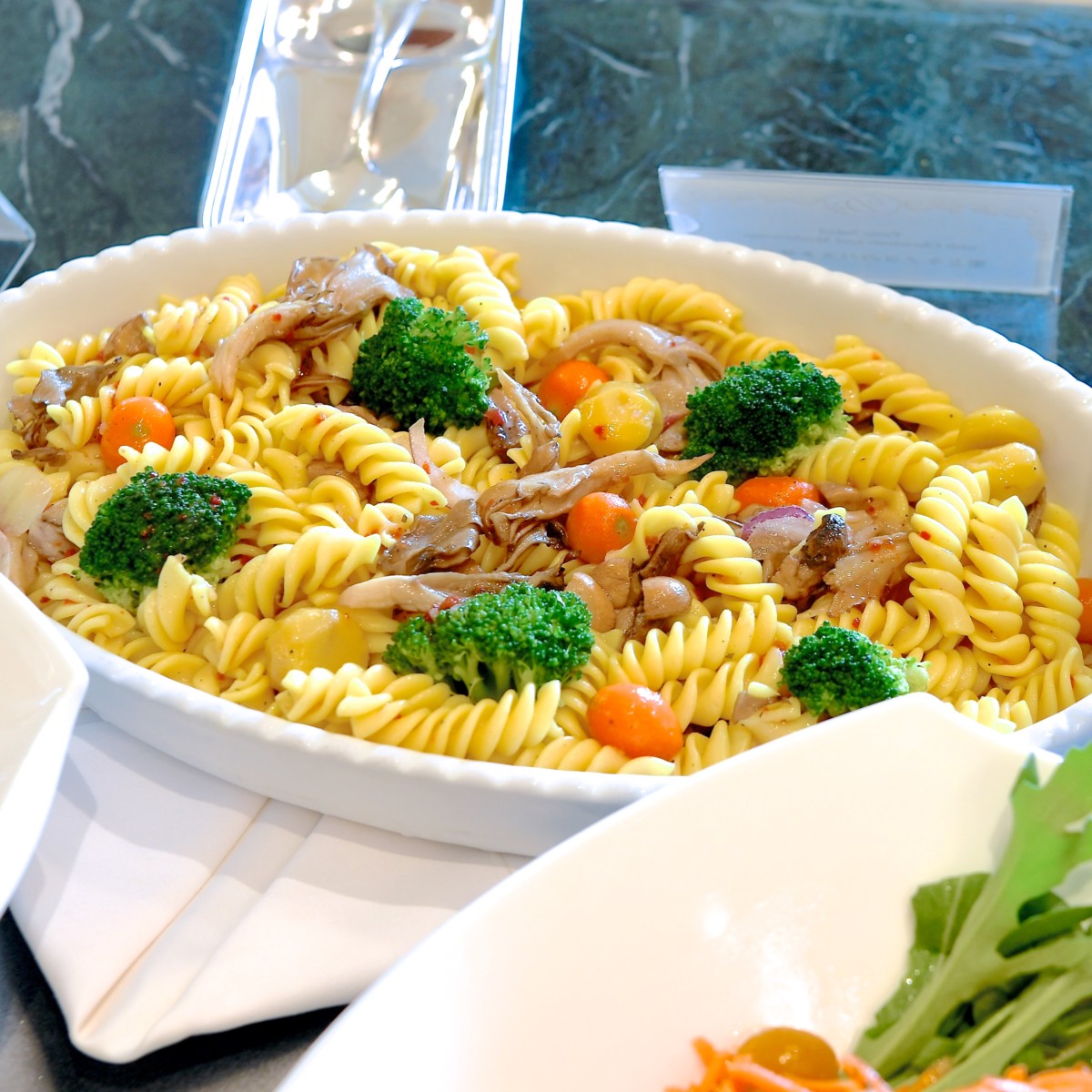 旬の栗ときのこたっぷりなパスタサラダ。