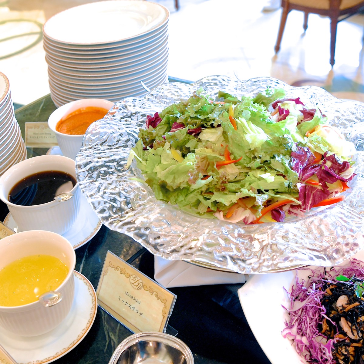 種類豊富なドレッシングといただけるミックスサラダ。